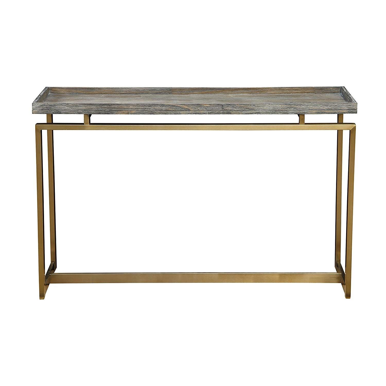 Rustic Floating Top Console Table w/ Brass-Finish Base