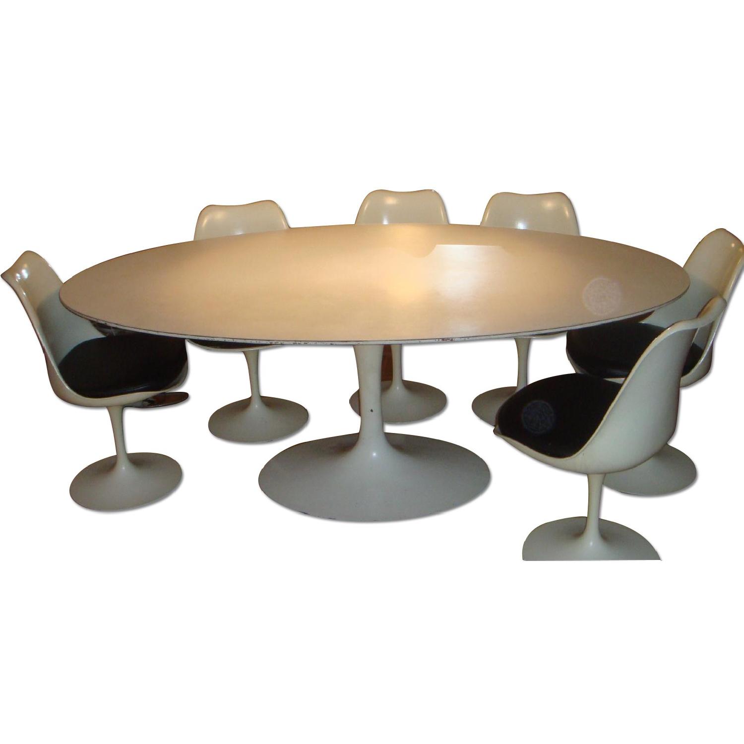 Seller's Notes:This is an amazing deal these chairs often sell for much more than this without the table. Saarinen 78 inch white tulip table with six matching chairs. Custom cushions are new -- the full set is in excellent condition. Form and function align perfectly in this midcentury classic -- a classic which never goes out of style!