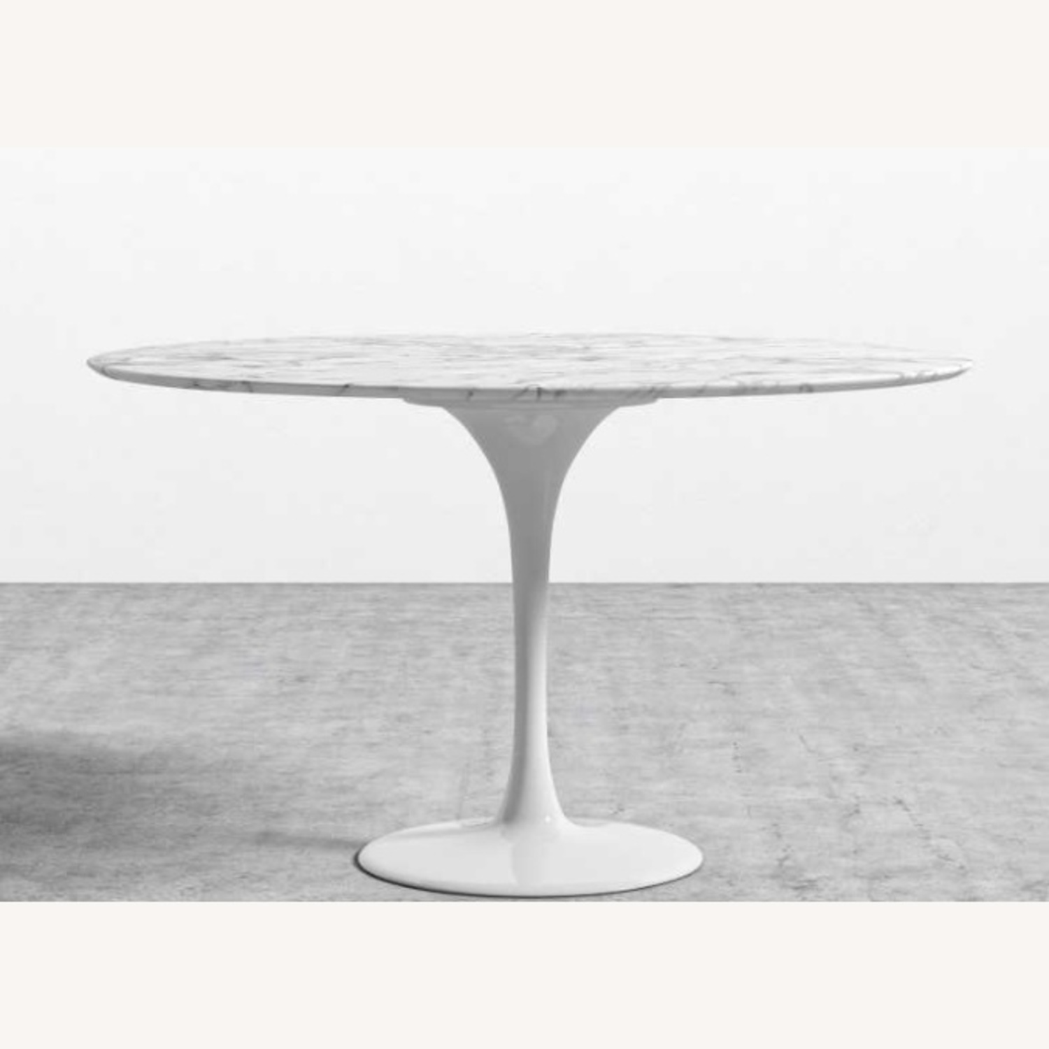 Seller's Notes:Authentic Knoll Saarinen round dining table with original white marble top and pedestal base.