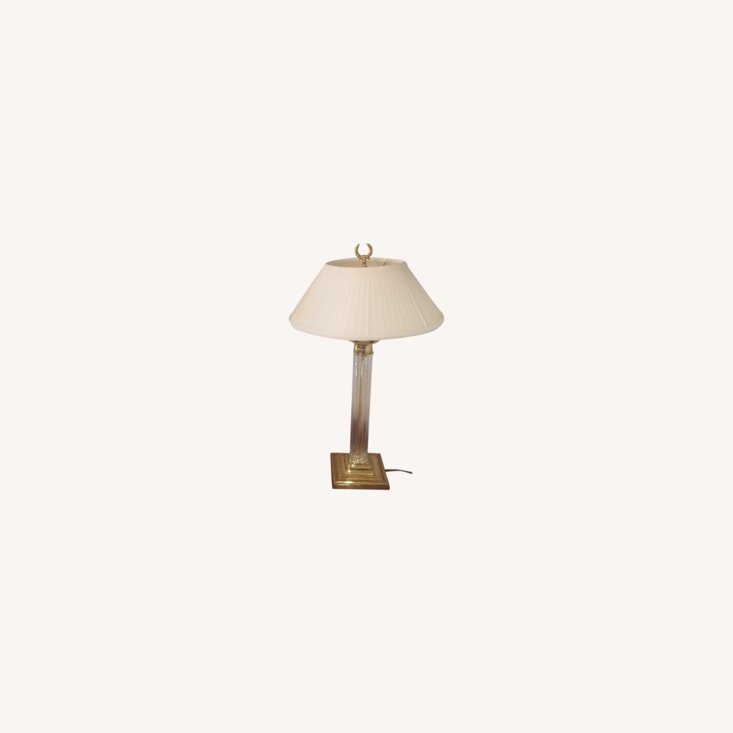 Seller's Notes:Delightful brass and glass lamps with traditional details. Excellent condition; barely used. Set of 2.