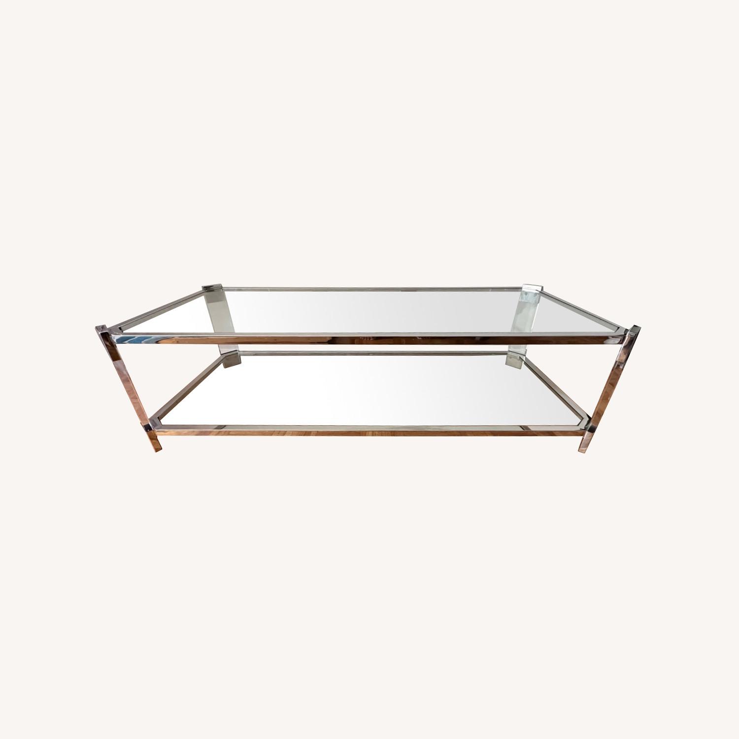 Seller's Notes:Beautiful Safavieh lucite, glass and polished stainless steel coffee table for sale! Would love to keep it, but we don’t have the space since having a baby! The table is in great condition besides a few superficial scratches (not noticeable unless you’re looking really close) from normal wear and tear. It truly is a beautiful, high quality piece!
