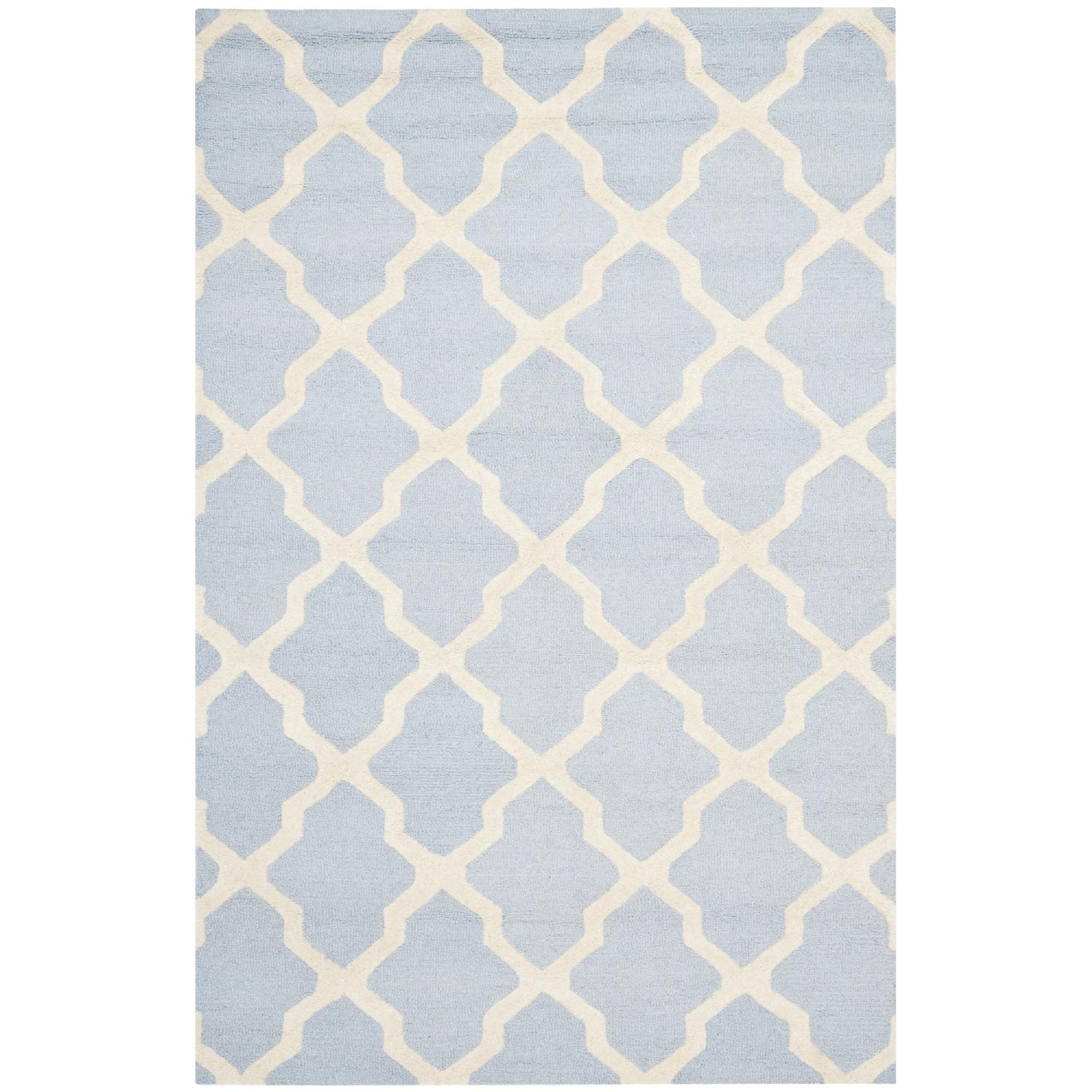 Seller's Notes:Well kept Safavieh Handmade Cambridge Moroccan Light Blue and Ivory Wool Rug rectangle approximately 8' x 10', no noticeable color stain