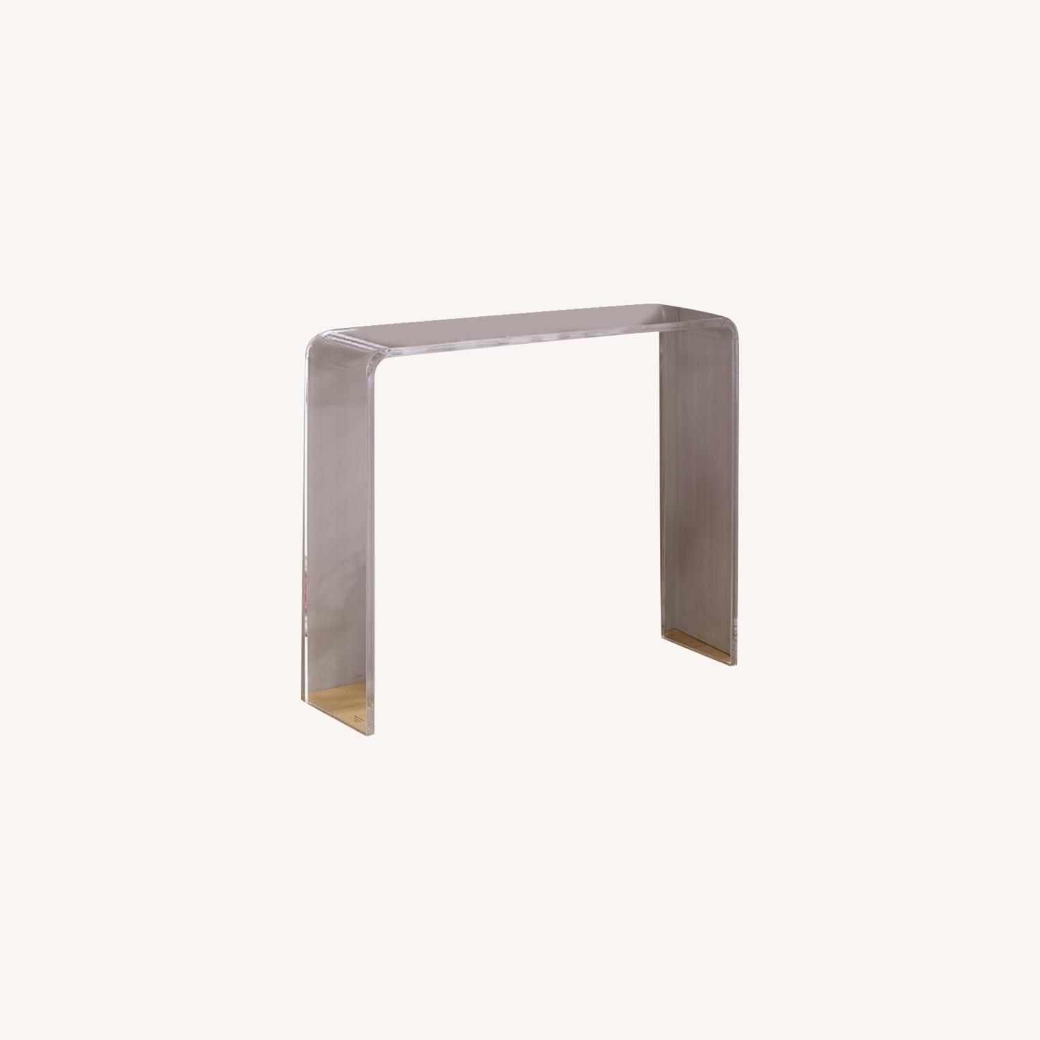 Seller's Notes:Lucite is a big trend! this is perfect entry way / console for city apartments Its heavy, durable and takes minimal space. Read the reviews on the seller site to get an idea, It has some scratch but it not noticeable at all since its a clear table You wont be disappointed