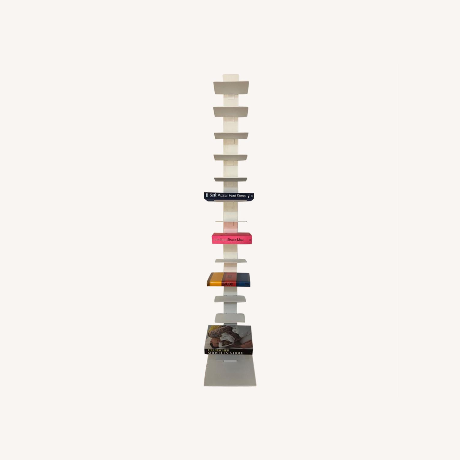 Seller's Notes:The Sapiens bookcase is an iconic contemporary product that is efficient in terms of space. Instead of having a standard book rack it is possible to use a limited vertical space and make it very special and unique. This is the concept behind this library. Ideal for small or large spaces, you can choose one of the three Sapiens models that can hold from 35 to 70 books. This minimalist product was designed by Burno Rainaldi and made using a vertical steel tube with sheet steel shelves and a solid base. We recommend a maximum weight of 2.5 kg per shelf. These Sapiens bookshelves, made by BBB Italia, used to be sold by Design Within Reach, 14 shelves, in perfect shape. Come & pick up in the BX. 3 Shelves in white available!!!