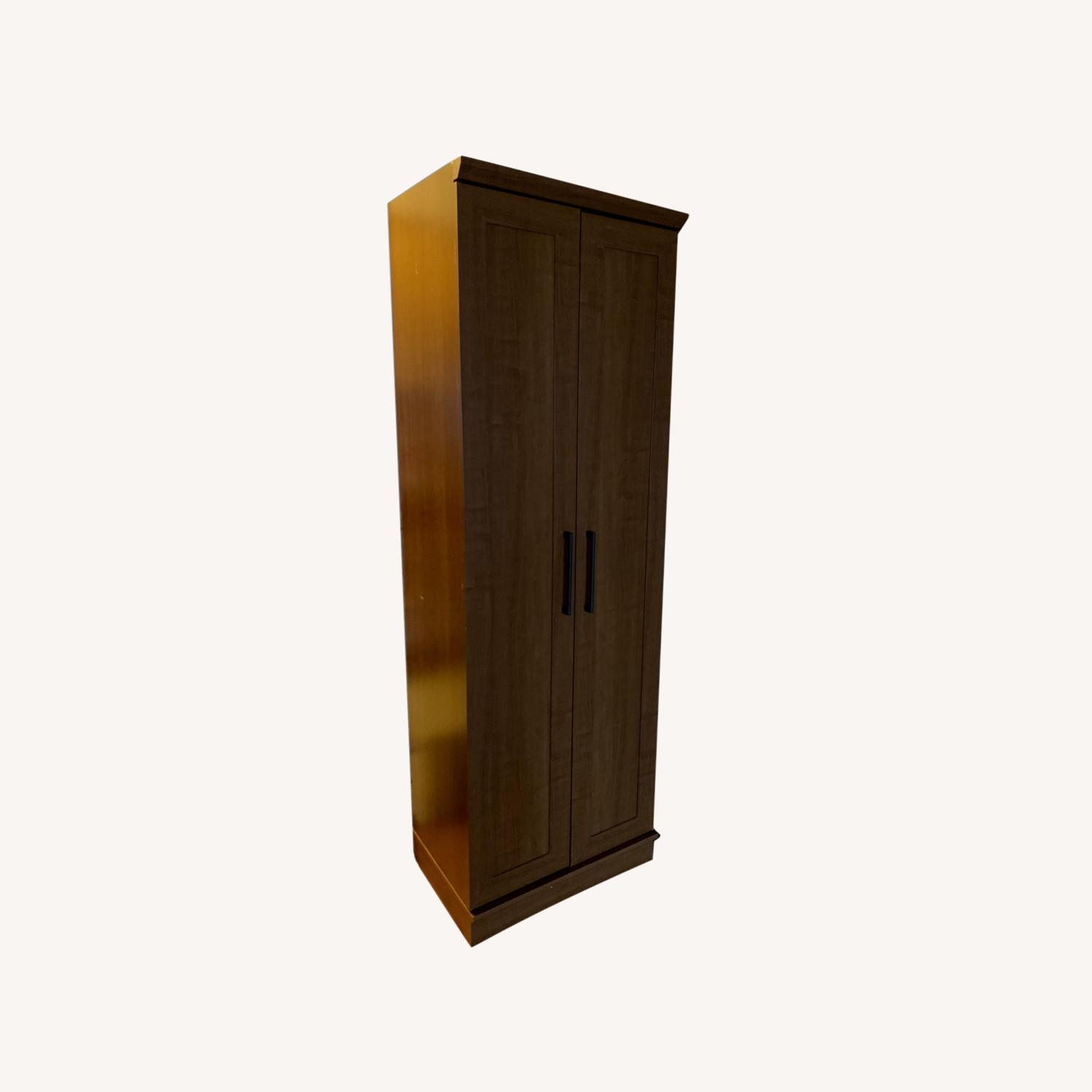Seller's Notes:Sauder storage cabinet in Sienna Oak finish with has four adjustable shelves. I've had it for about a year and a half, it's in great shape (no visible damage), and is very sturdy. I'm only selling it because I've recently moved and don't have a spot for it in my new place.