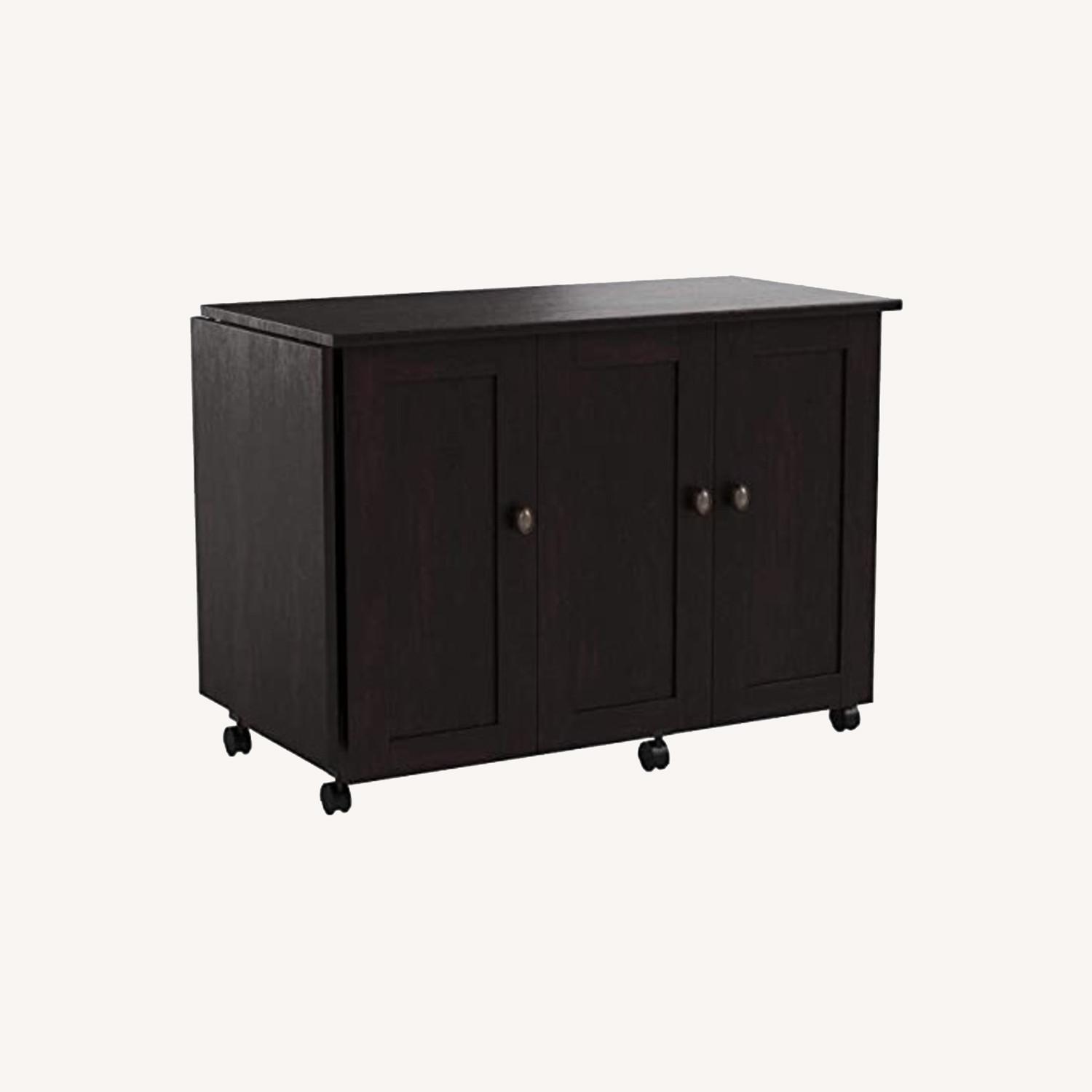 Seller's Notes:Sauder Select Collection Easy Rolling Sewing and Craft Table/Cart, Cinnamon Cherry finish Some small scratches on the back. Not all stickers removed from assembly. Fully assembled. Drop leaf craft and sewing table provides extra work space. Storage behind roll-open door includes two storage bins and hidden shelf for sewing machine. Two adjustable shelves behind door. Melamine top surface is heat, stain, and scratch-resistant. Easy-roll casters Assembled dimensions: 40.079" L x 19.449" W x 28.504" H Open Dimensions: 62.20" L x 19.5" W x 28.5" H || Weight: 83.2 lbs Happy to discuss pickup. Happy to provide more pictures. Price somewhat negotiable. Located near Hudson Yards.