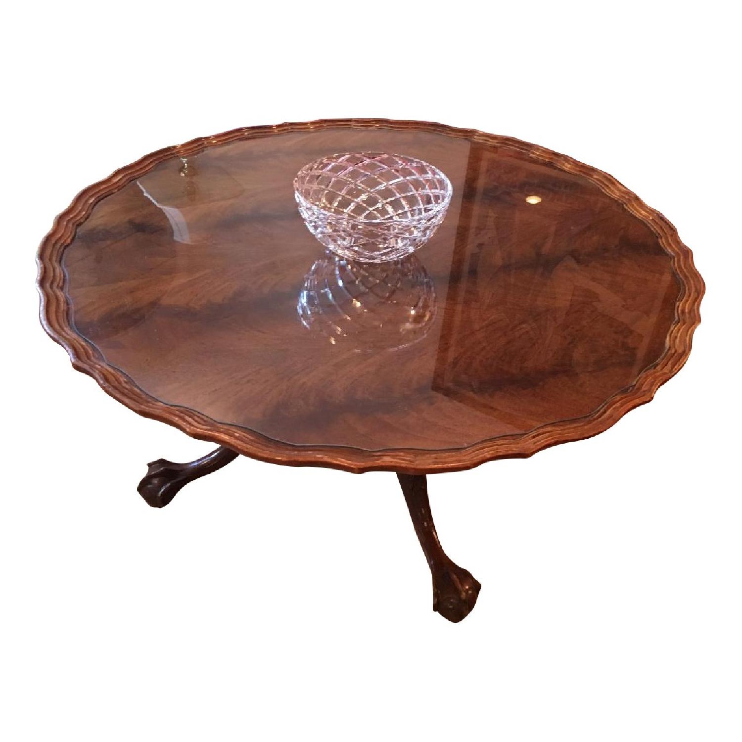 Scalloped Edge Round Coffee Table w/ Custom Glass Top