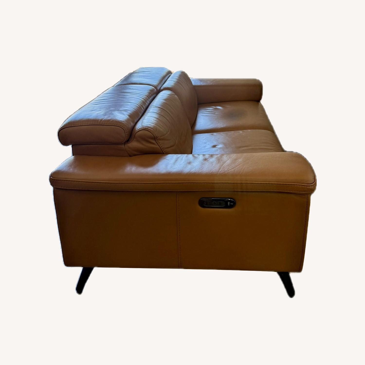 Seller's Notes:Purchased 3 years ago from Scandinavian Designs. Made of 100% real genuine leather. Power reclines both head and feet, separately or at same time, to lay down or sit up position. Comes with two usb charger outlets on each side (sofa must be plugged in for chargers and reclining to work- charging cord of course included). Has a burn mark damage on one side which can be patched or stained.