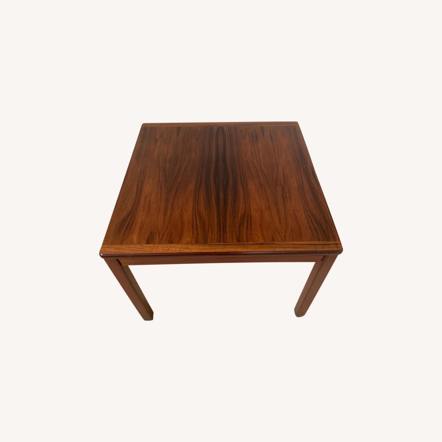 Seller's Notes:Circa 1960's/70's- Simple lines, beautifully grained natural rosewood surface. Highly prized Rosewood is a rarer alternative to Teakwood, more commonly used in Scandinavian wood design. Stamped "Made in Norway" underneath. Legs can be removed for easy storage or transport. In very good condition. Versatile as sturdy center table or side table. I have to part with this gem due to move. A highlight to any interior and will hold its value!