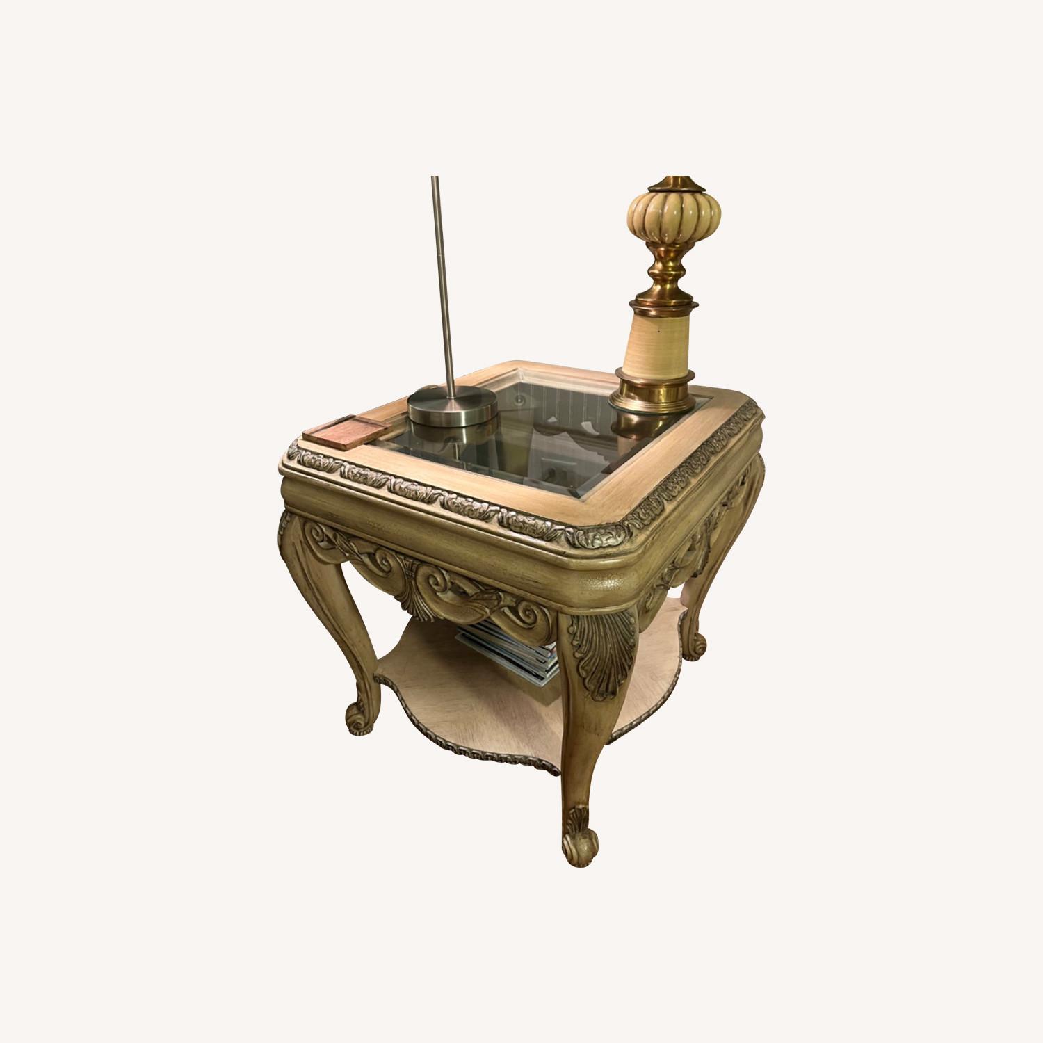 Schnadig Carved Wood Side Tables W Beveled Glass