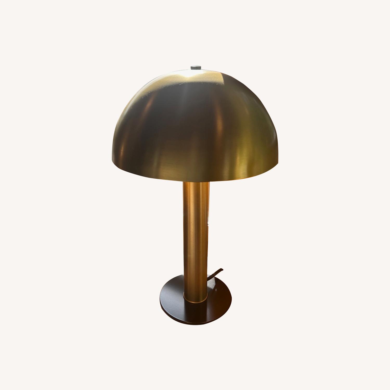 Seller's Notes:Excellent, like-new condition Current retail price $499 From the Schoolhouse Site: A unique, mushroom-shaped lamp that is sure to inspire joy wherever it rests. The era-defying appeal of the Sidnie Lamp flows out of its charismatic personality and exceptional usability. A hand-spun steel shade adds a sturdy weight while subtle detailing, including a felt base pad, dual porcelain sockets, and rotary switch, complete the fixture. Assembled in our Portland, Ore. factory using ethically-sourced domestic and global components. • Assembled in our Portland, Oregon factory • Hand-spun steel shade