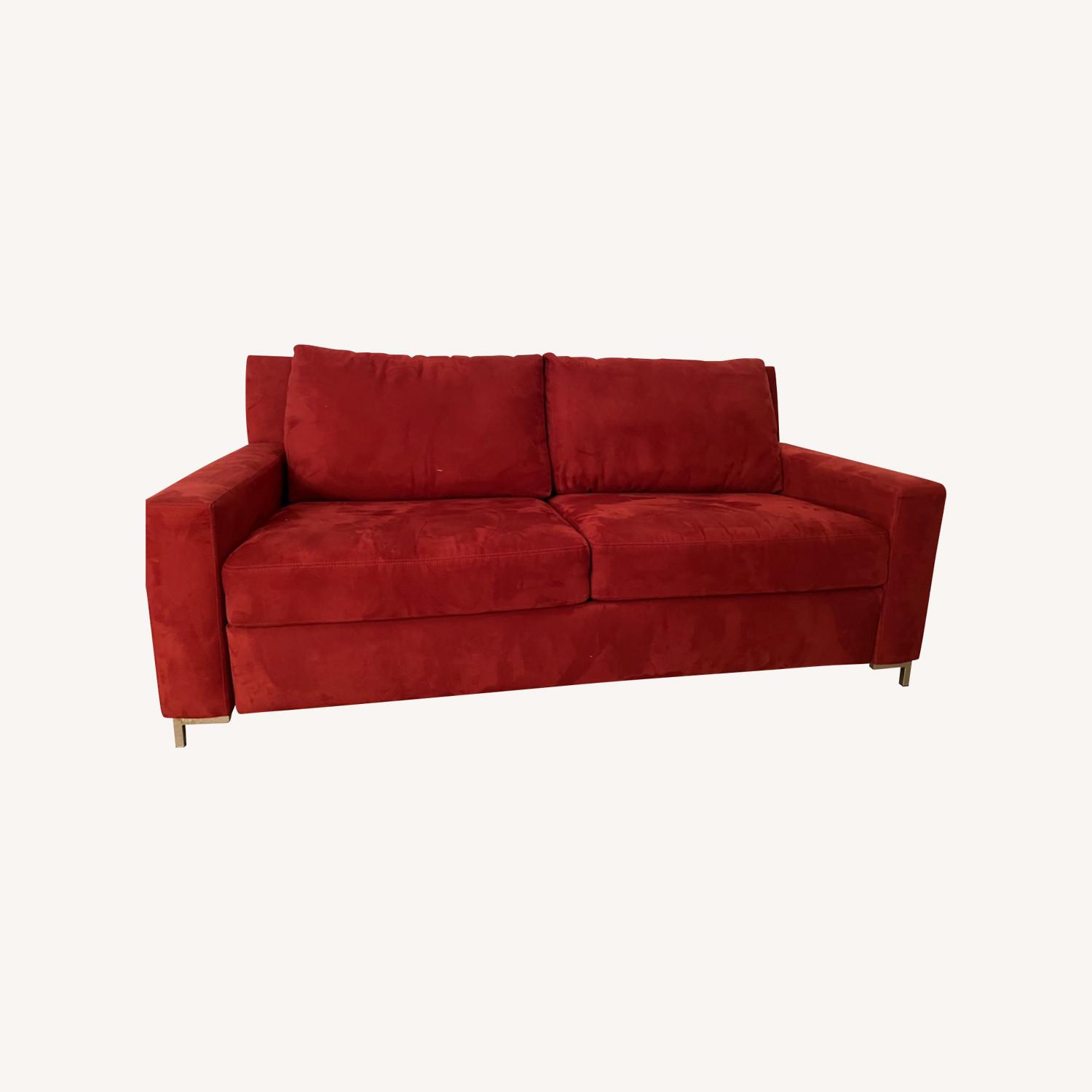 Seller's Notes:Comfortable sleeper sofa in cinnabar suede
