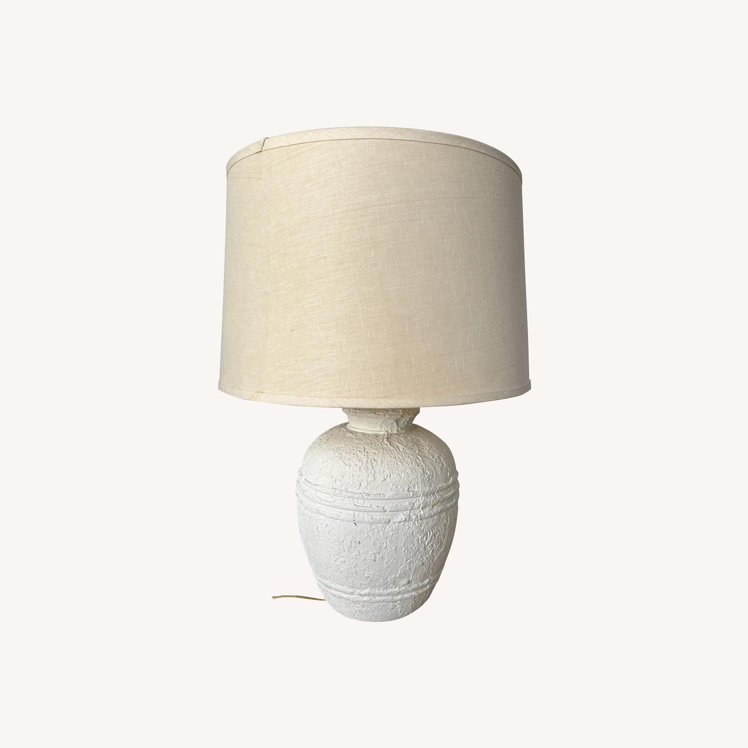 Seller's Notes:Chic! Sculptural vintage lamp with a textured finish. Approx. 22" tall with bulb/globe and approx. 6" at base. Lampshade not for sale;)