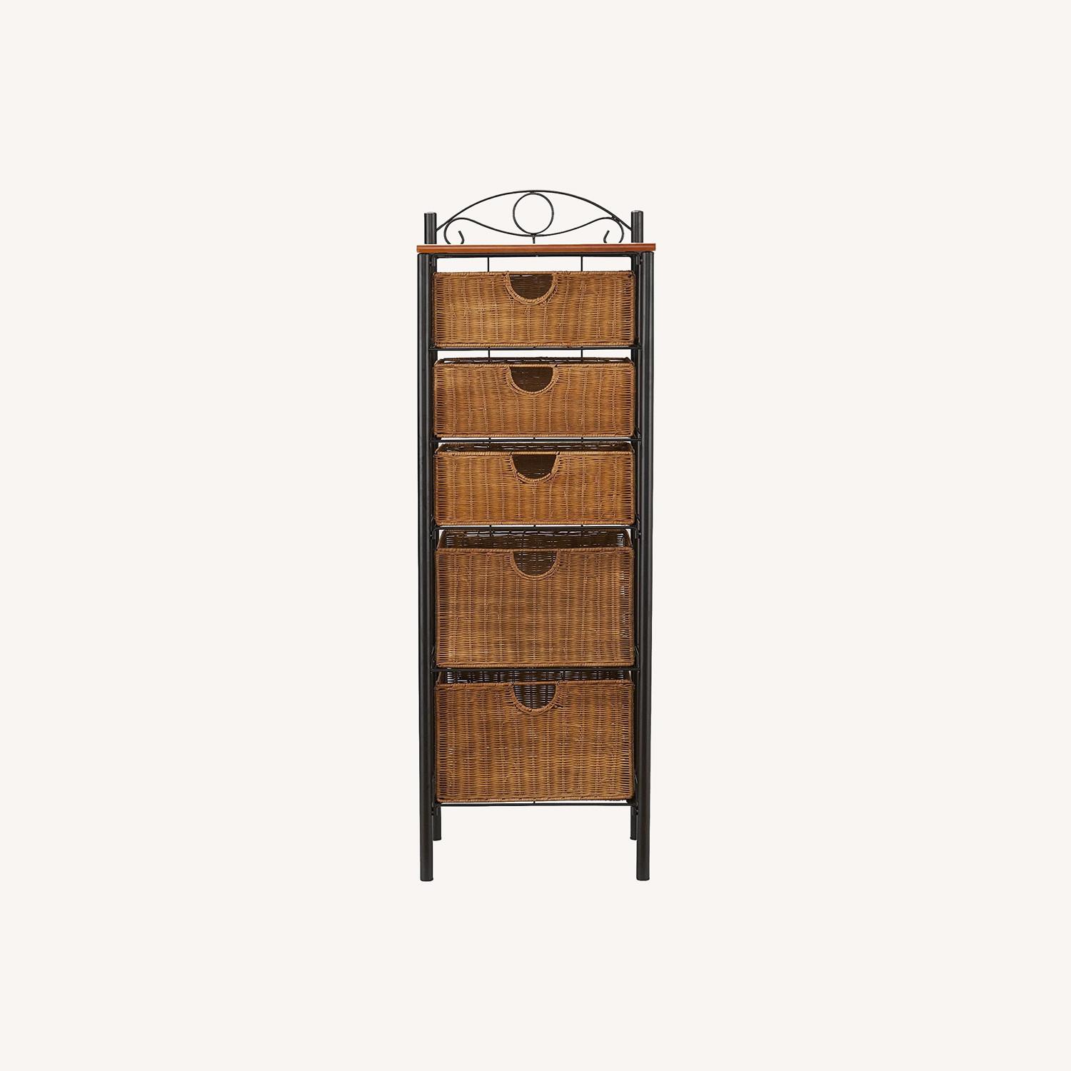 SEI Wrought Iron and Wicker 5 Drawer Storage Unit
