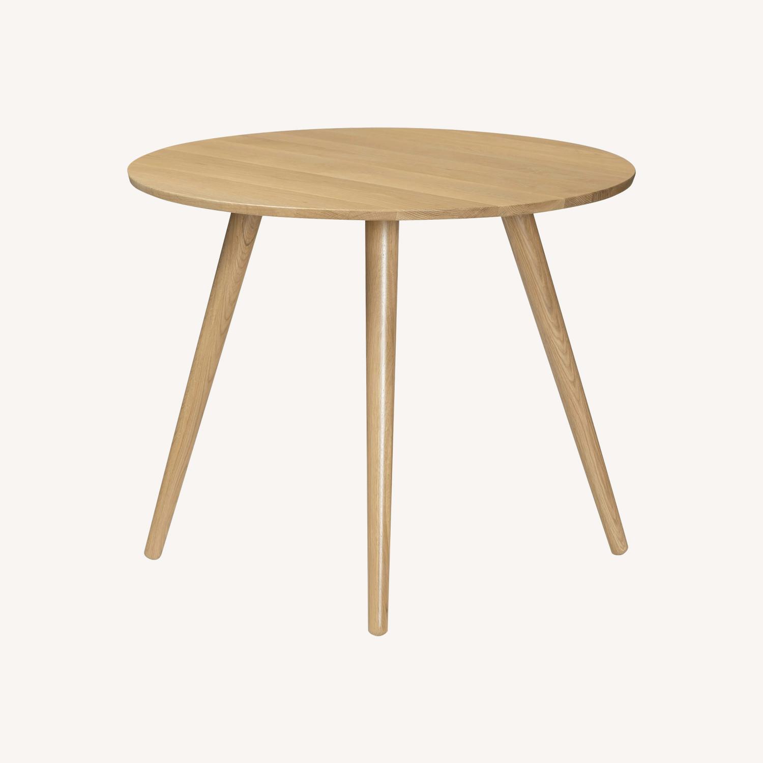 Seller's Notes:Beautiful Article Seno round dining table in oak - perfect for apartments, breakfast nooks, or small dining spaces!
