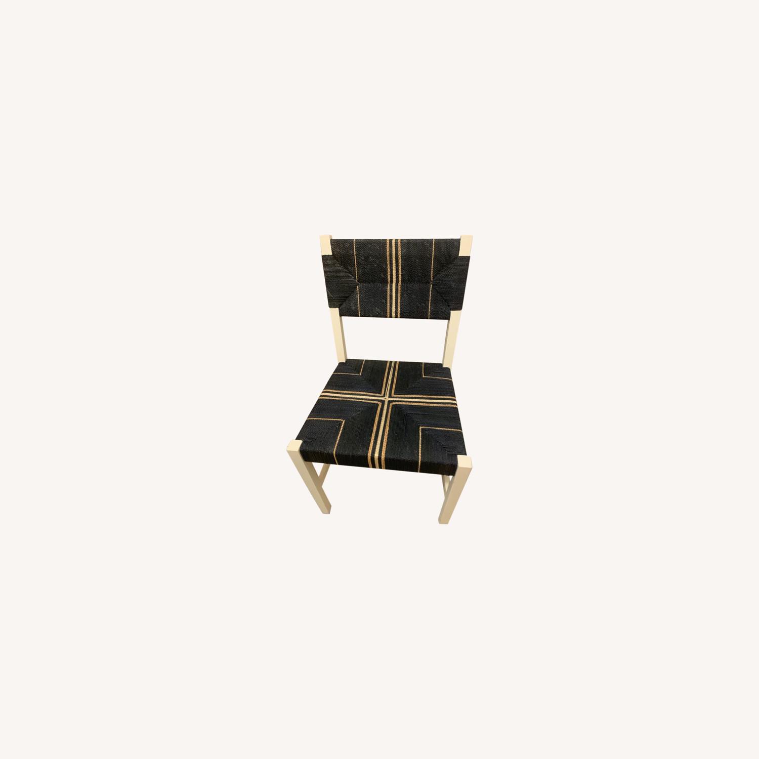 Wear and tear details: discoloration, One of the chairs show slight use on the back part of chair. See photo, one string is a little loose on one chair. but it is tucked underneath and you would never know it otherwise