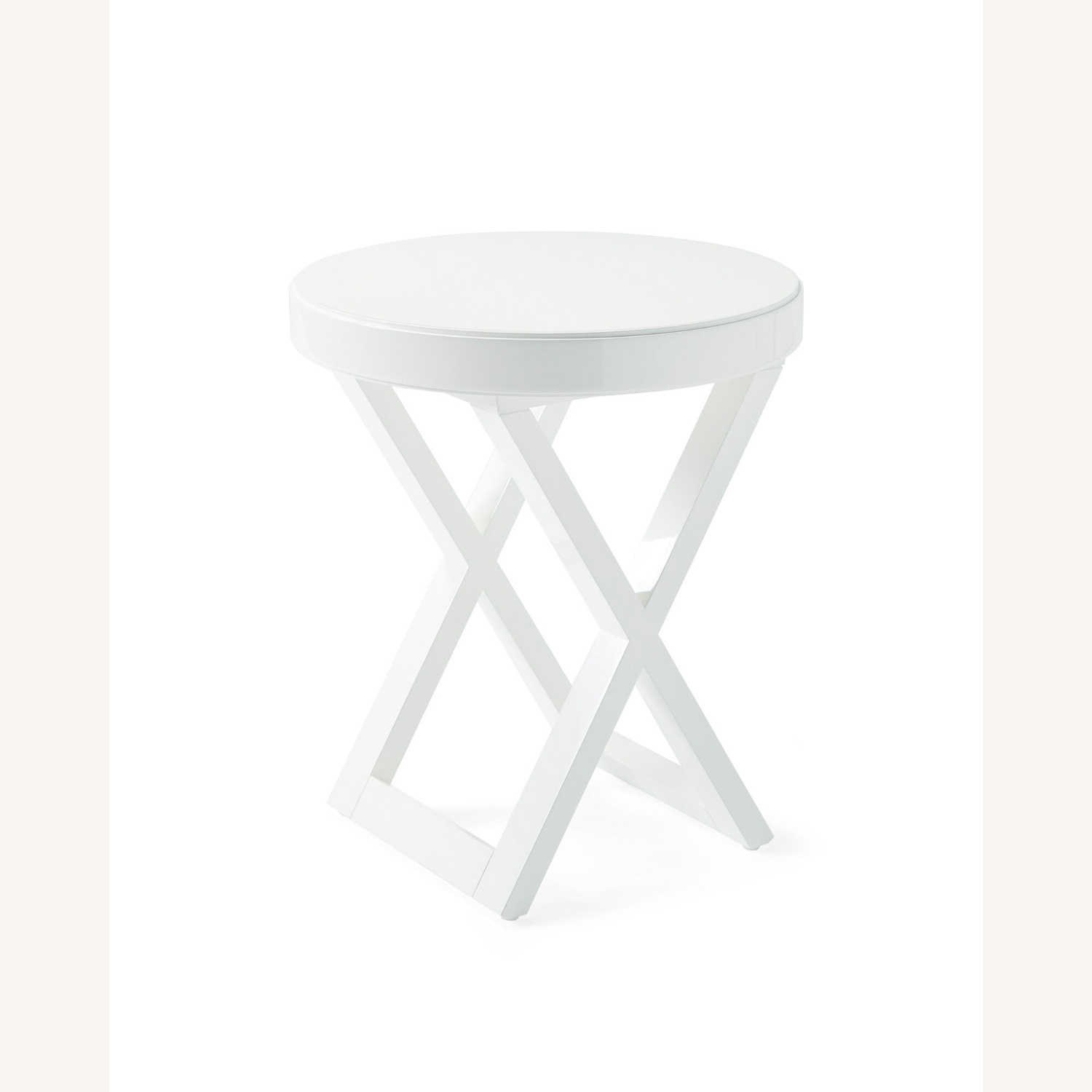 Seller's Notes:Serena & Lily white side table with cross bottom