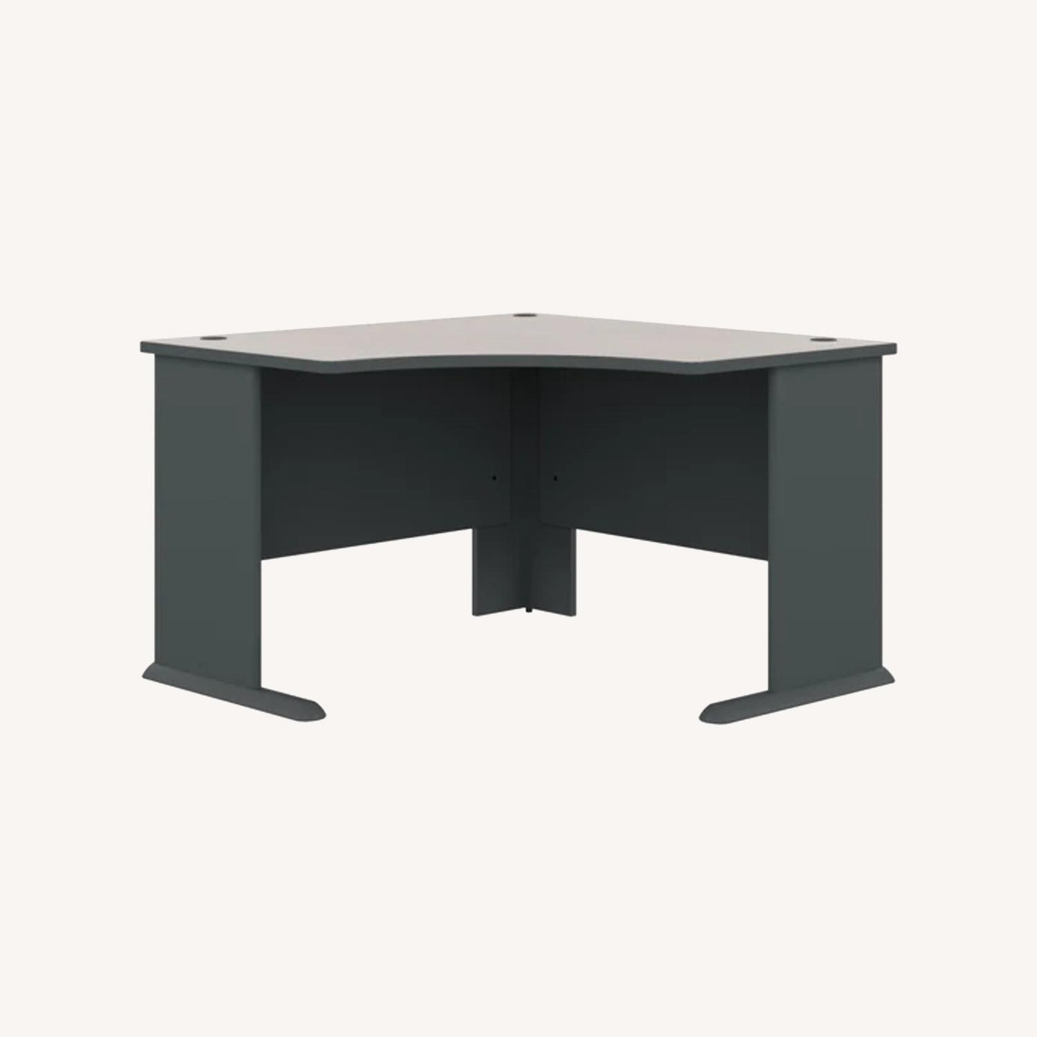 Seller's Notes:The Bush Business Furniture 48W Corner Desk maximizes your small office space with a convenient design and commercial-grade quality. Ideal for use in a corner, the Desk provides a comfortable curved work area, and a C-Leg design creates plenty of legroom. A scratch-resistant thermally fused laminate surface and thick end panels fend off damage, while sturdy feet with adjustable levelers ensure stability. Keep your cables in order with wire management grommets. Expand your work surface with coordinating Series A Desks, and add a Hutch, Keyboard Tray or Pencil Drawer (all sold separately). Series A completes your multi-person workspace, classroom, home office or anywhere in between with a variety of layout options. Featuring multiple two-tone finishes and contemporary styling, this commercial office furniture adapts to your surroundings. Customize any environment with a full line of affordable products, all backed by a 10 Year Warranty. Series A withstands the rigors of a 40-plus hour week and meets ANSI/BIFMA quality test standards. American made with U.S. and imported parts.
