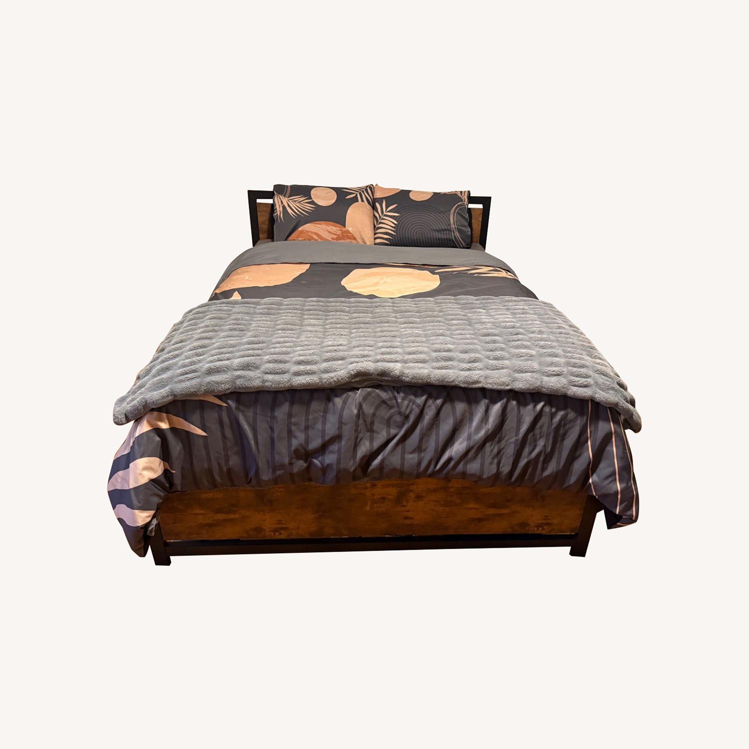 Seller's Notes:the corresponding box frame (doesn’t need it), and the modern style bed frame with black wrought iron, and wooden paneling