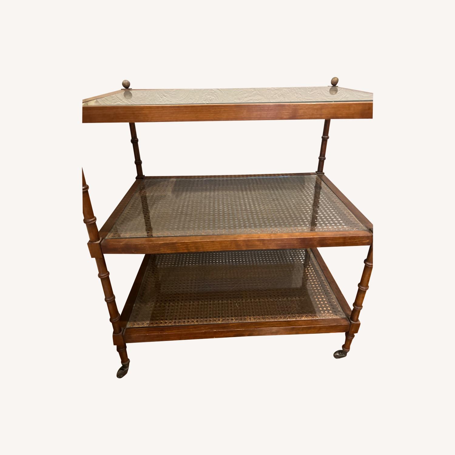 Seller's Notes:Caning covered by glass shelves, has been a treasure in our family, practical and special