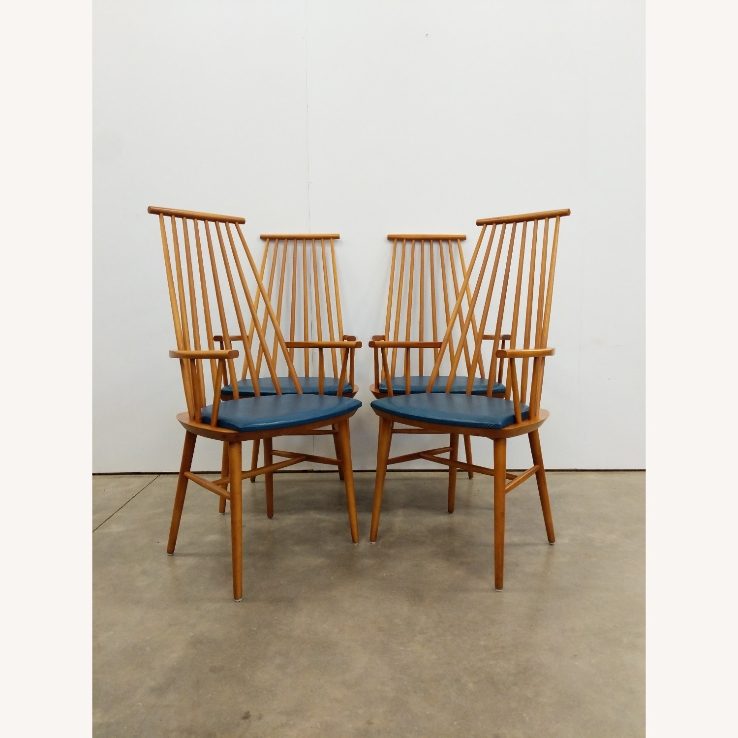 Seller's Notes:Set of 4 authentic vintage mid century Danish / Scandinavian Modern armchairs / dining chairs. The existing upholstery is in very good condition. This set is in excellent condition with very few signs of age-related wear (see photos). If you would like any additional details, please contact us. Dimensions: 42.75” tall to back 18.5” tall to seat 20.5” wide 20” deep 26.25" tall to arms Ref: UK4-087