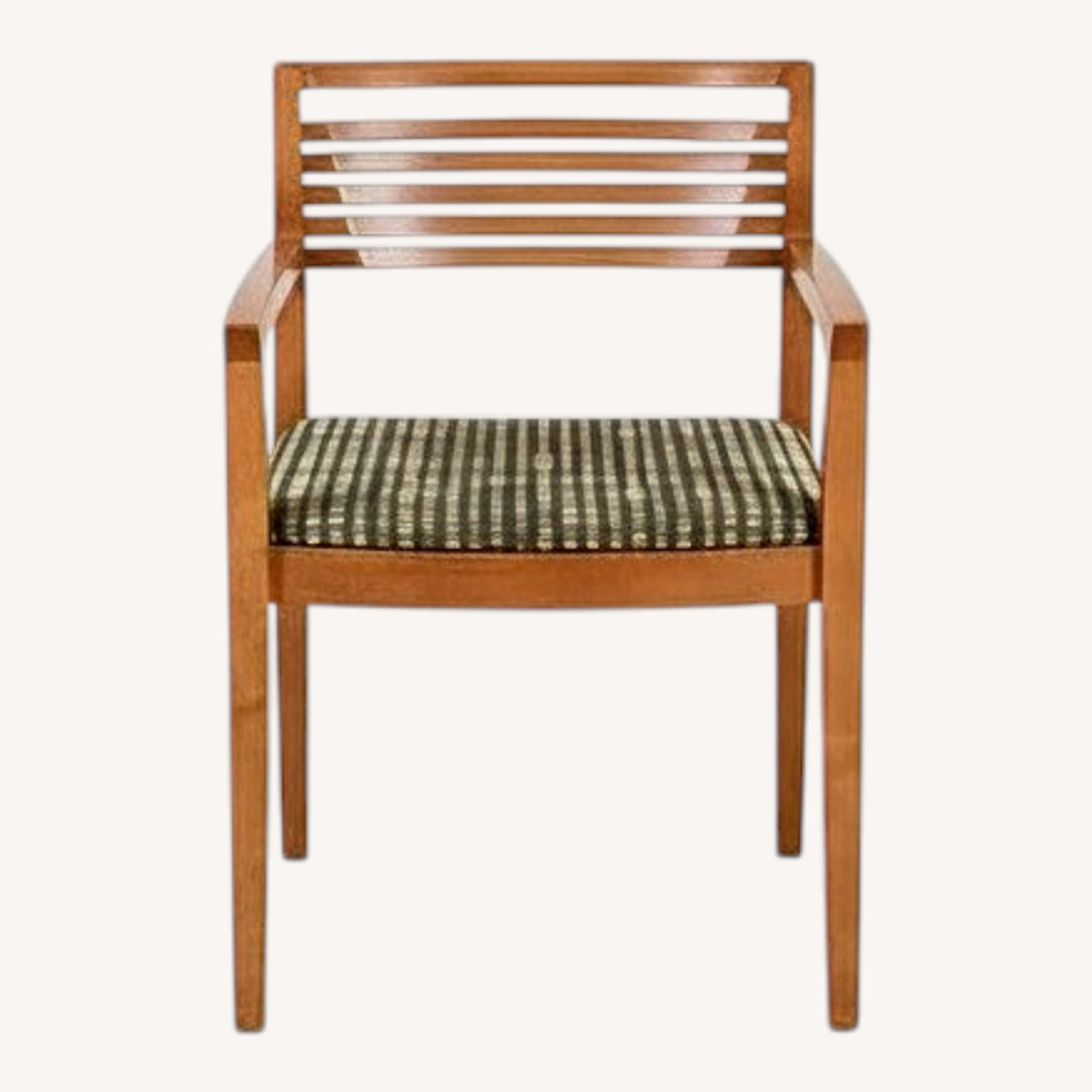 Seller's Notes:We have 6 Knoll Studio Ricchio armchairs designed by Joseph and Linda Ricchio. They feature solid wood frames and upholstered seats in patterned Knoll Textiles fabric. Made in 🇺🇸 USA!
