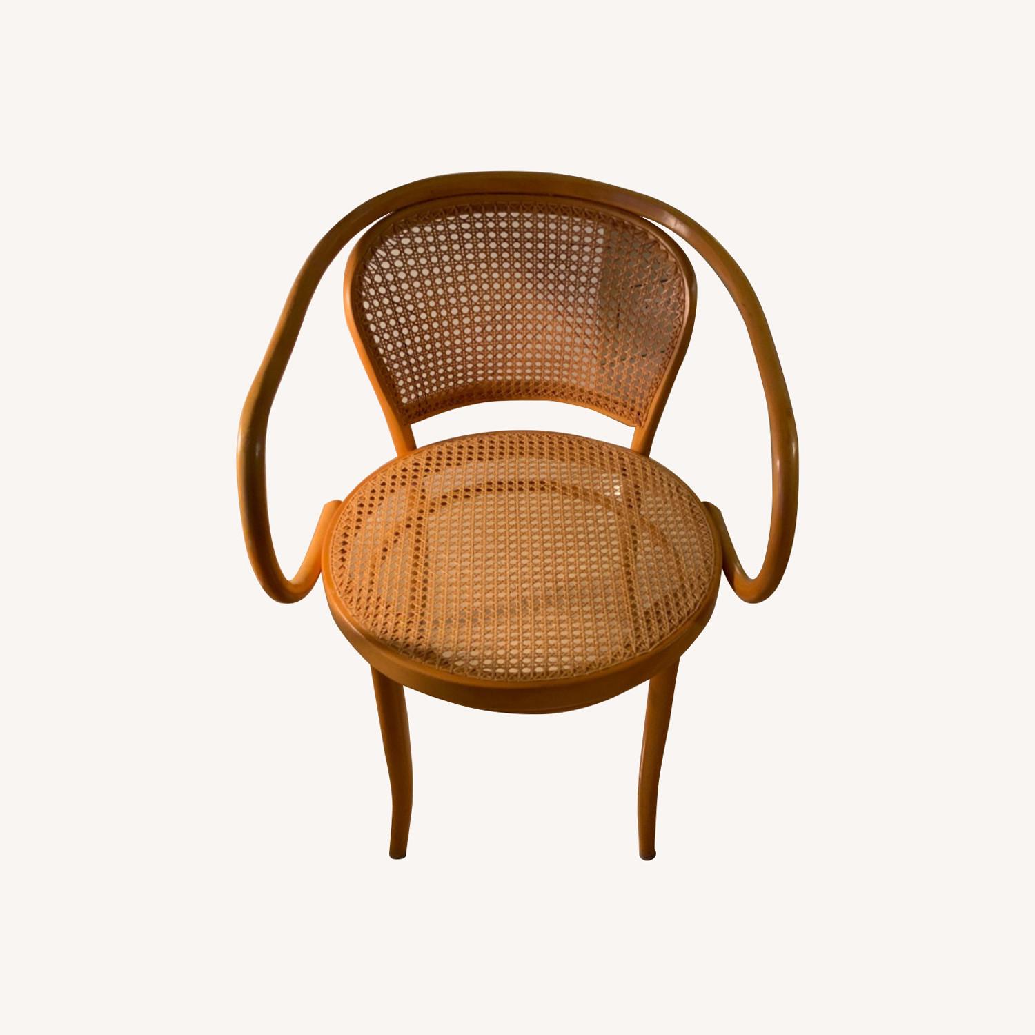 Seller's Notes:These beech and cane bentwood chairs contain two red-stained Beech chairs and six chairs are natural Beech. We have cared for them for 40 years, and three had the seat caning repaired The two red chairs are usually at the head of the table and a favorite of couples. We purchased them from Knoll directly. They have aged gracefully with care. One natural chair needs the seat repaired.