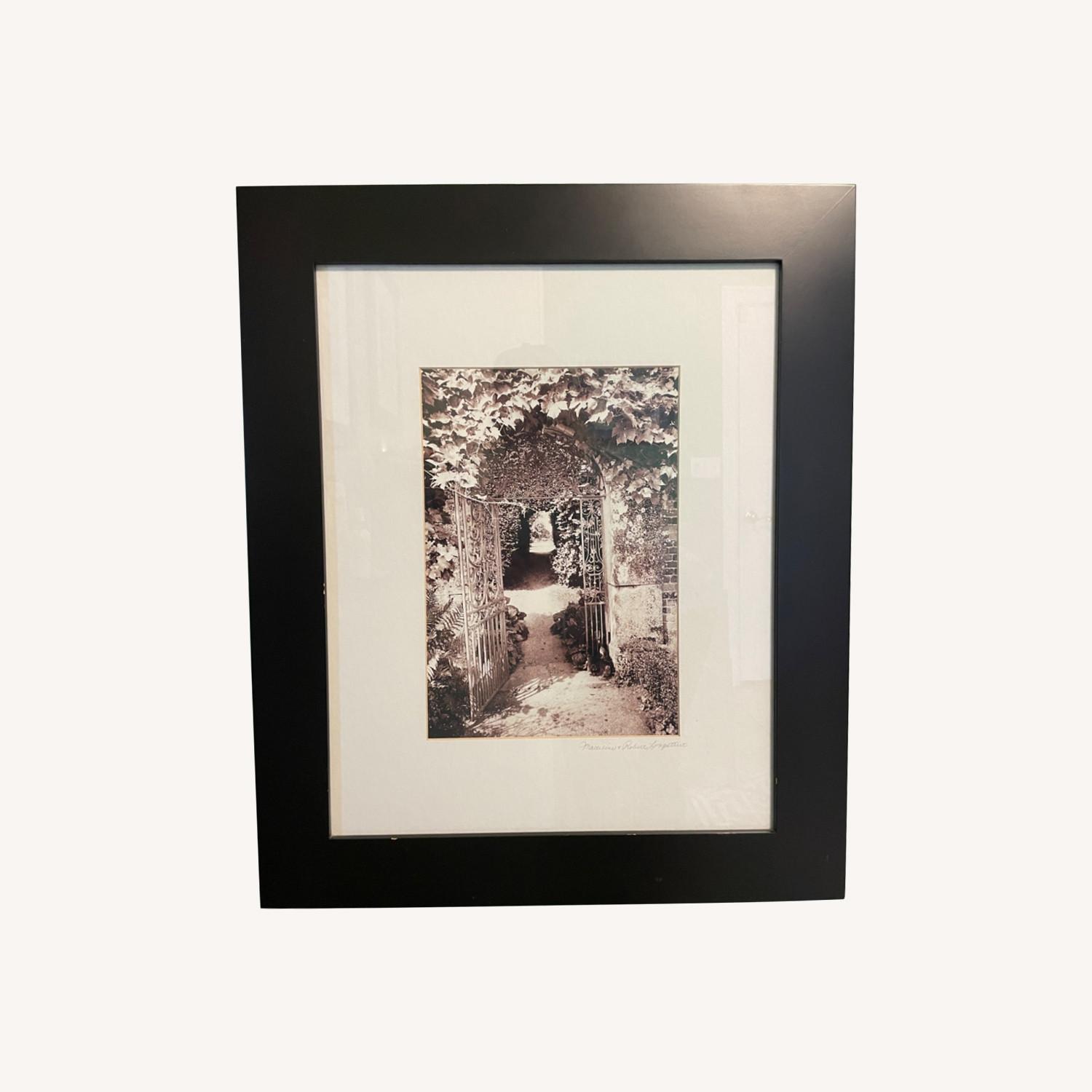 Seller's Notes:These sepia toned photographs of old formal gardens are matted and framed and slightly distressed, black wood. Signed by the well-known photographers. 20.5” x 24.5” x 1” deep. Artists and photographers Madeline and Robert Longstreet have combined talents to portray their inspired interpretation of home and garden. This collection is their own unique blend of alternative photography and contemporary printmaking combined with a personal journey through the natural world. Originally from New Orleans, Louisiana, Madeline attended Washington University in St. Louis and earned a BFA. She studied painting with Elaine DeKooning which inspired a series of portraits. Subsequently, a love of horticulture and gardens lead to large-scale, botanical, watercolor, and oil paintings. Robert studied art Washington University, the School of the Art Institute of Chicago and Rhode Island School of Design. A student of Barbara Crane, Robert concentrated on alternative processes of photography. Their work graces international projects, private collections, museums, showrooms and galleries.