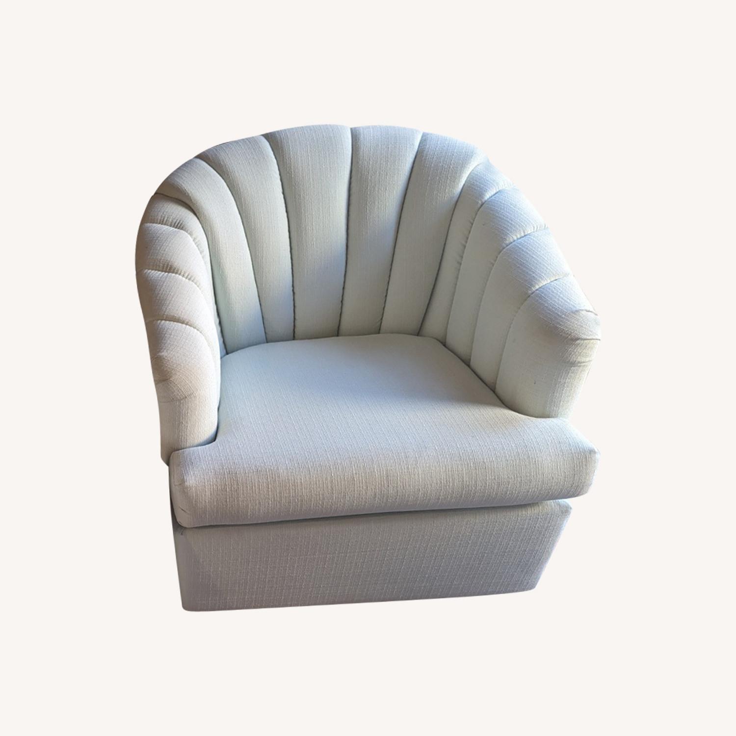 Seller's Notes:Bought these vintage chairs years ago. They are a very light color - hint of green in them. Beautiful chairs. One has a small hole in the back.
