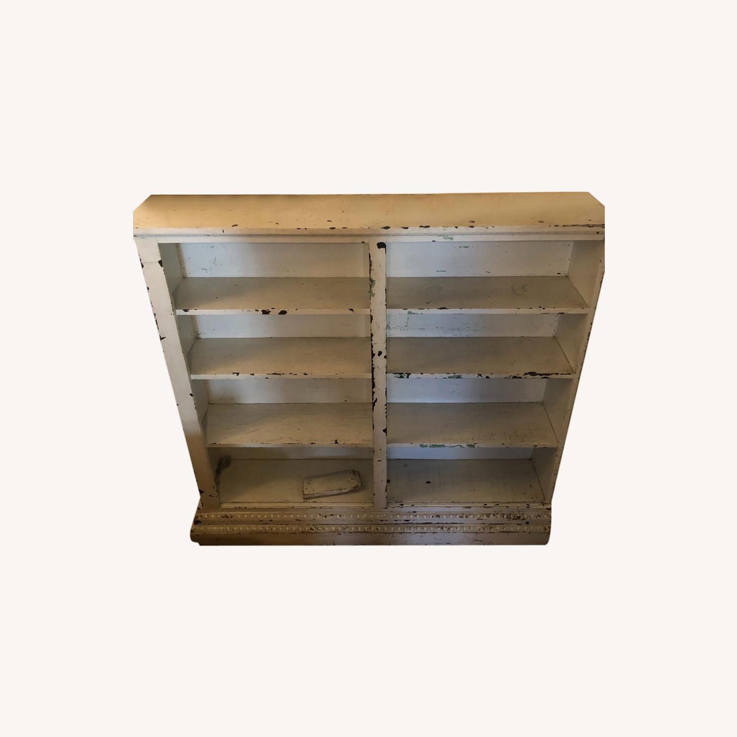 Seller's Notes:I bought this roughly 20 years ago at flea market in Park Slope. I'm not sure about its origins. The guy who sold it to me said it was part of a built in bookcase in an old brownstone. At some point someone painted over it white. The wood underneath the paint is very solid, I think perhaps oak, but not so sure about the backboard. This is a very sturdy piece of furniture, no wobbles. In the right space this thing looks pretty awesome. Quite a bit of character from the chipping paint and blemishes/patina that have built up over the years. Have used it in studio space to store paint and all sort of art supplies. Sad to see it go but don't have the space for it any longer.