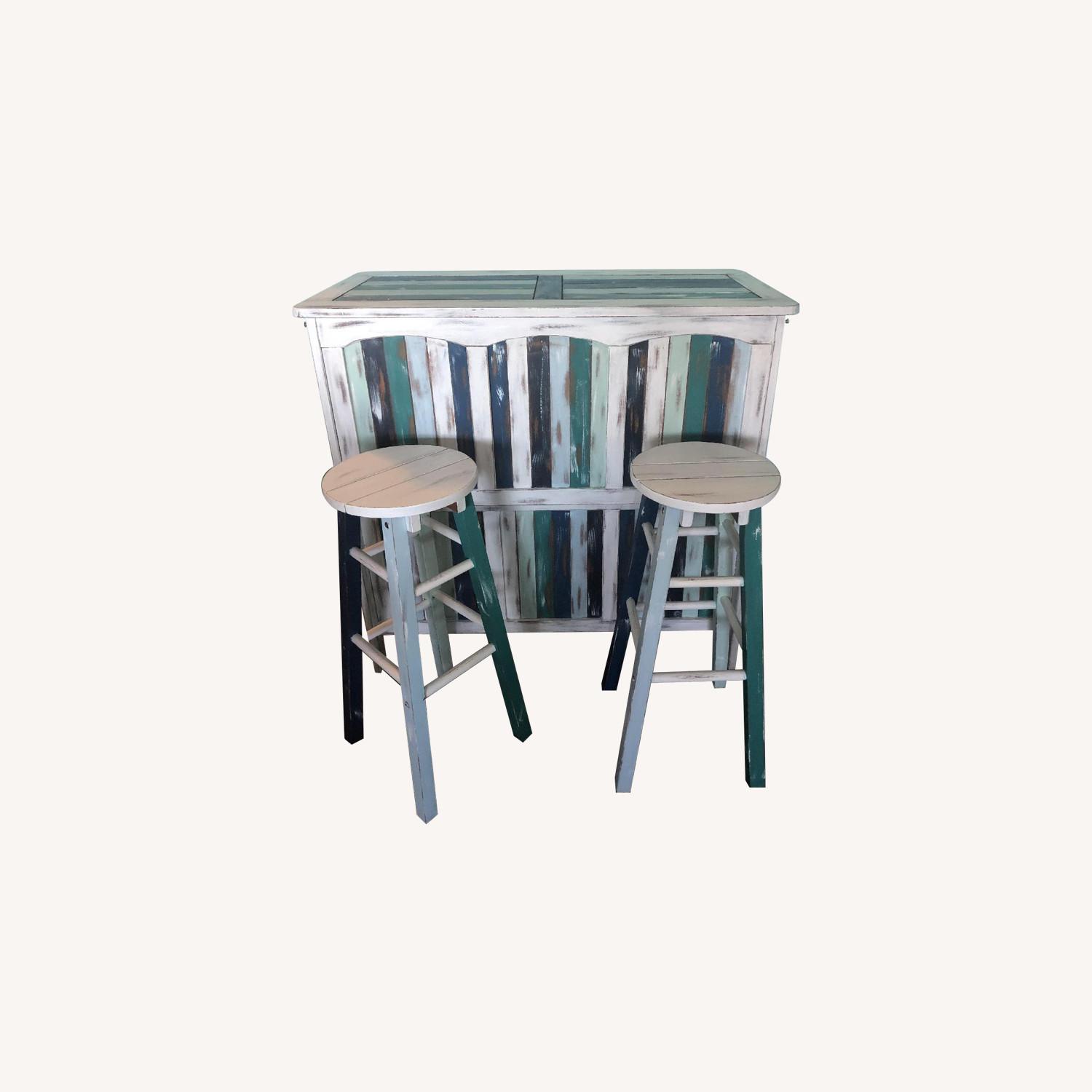 Shabby Chic Rustic Wood Bar w/ 2 Stools