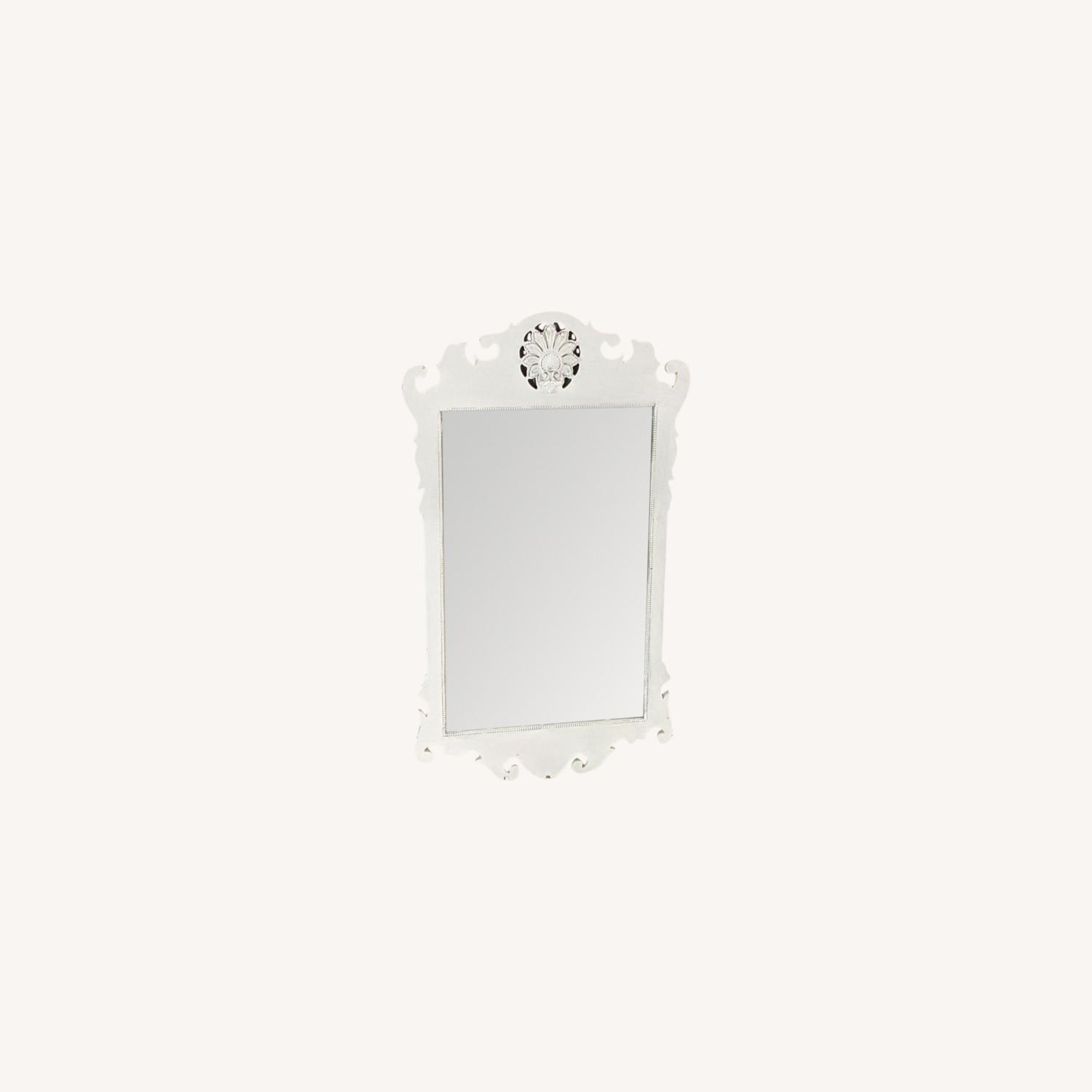 Seller's Notes:Chippendale style mirror featuring a scalloped shell and leaf crest. The original mirror has been updated with a coat of paint.