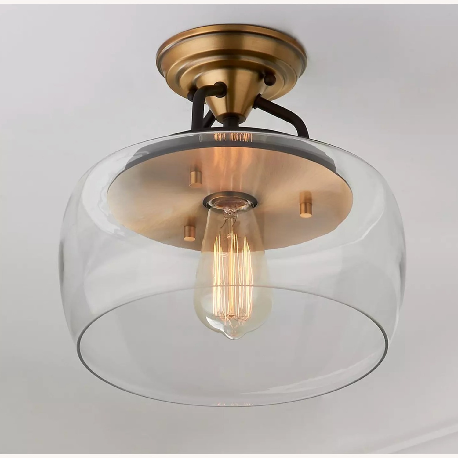 Website description... "Simplistic and chic, the Mod Bowl has modern hardware and a clear glass shade that exudes a sleek and minimal aesthetic. The bowl shaped shade creates a tailored profile and allows the light to shine through clear glass that will perfectly accent your transitional living room or kitchen."