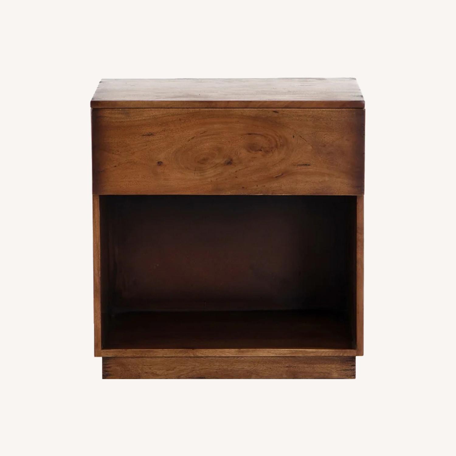 Seller's Notes:Organic in nature with mid-century undertones, the Elora Nightstand is made from solid acacia, forming a streamlined nightstand. Featuring a single drawer plus lower shelving, this nightstand is perfect for handy bedside storage.