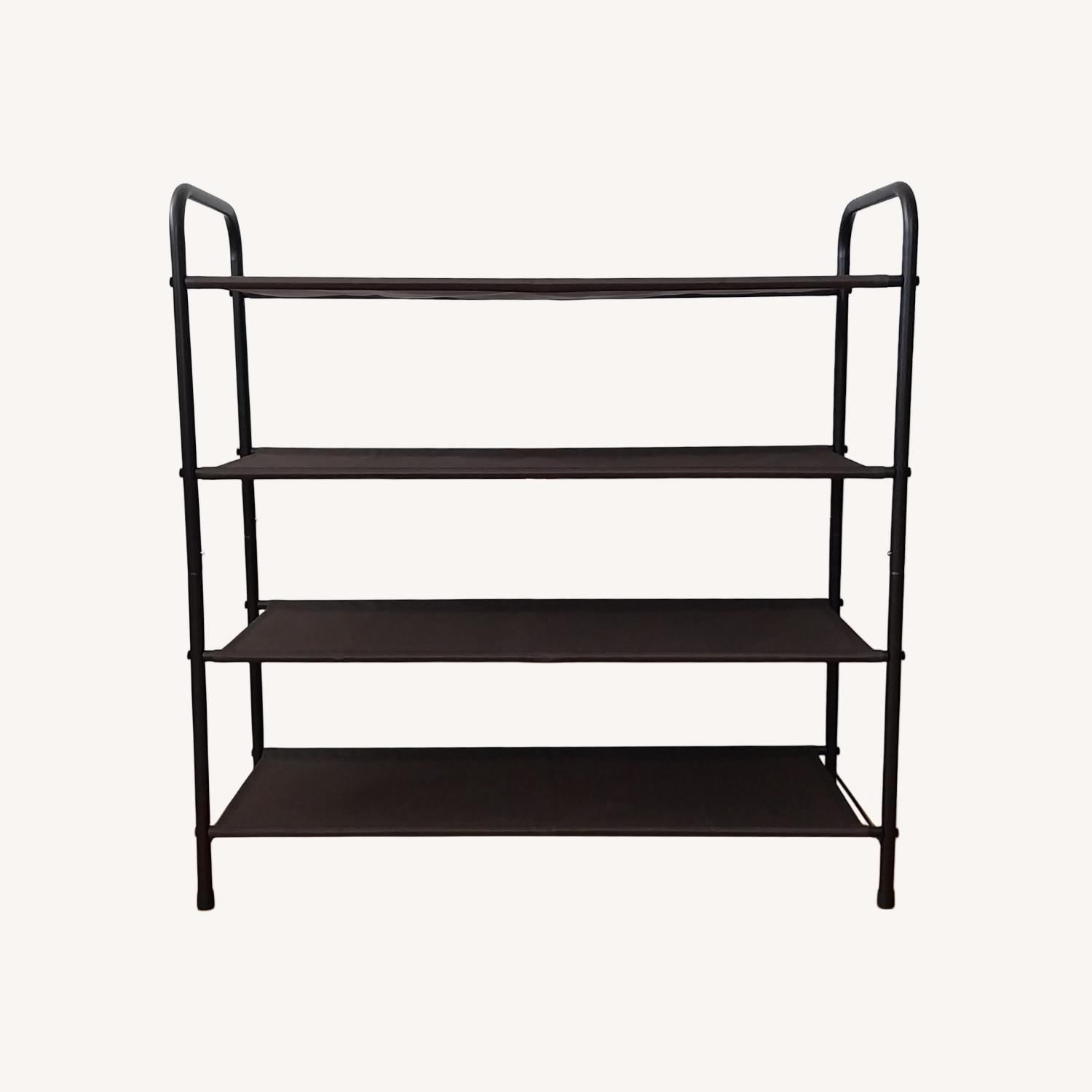 Seller's Notes:Simple Houseware 4-Tier Shoe Rack Storage Organizer - Bronze. Stores up to 12-20 pairs of shoes. Sturdy metal construction with washable 600 D polyester fabric, each shelf holding up to 30 lbs. Item is 1 year old with absolutely no blemishes.