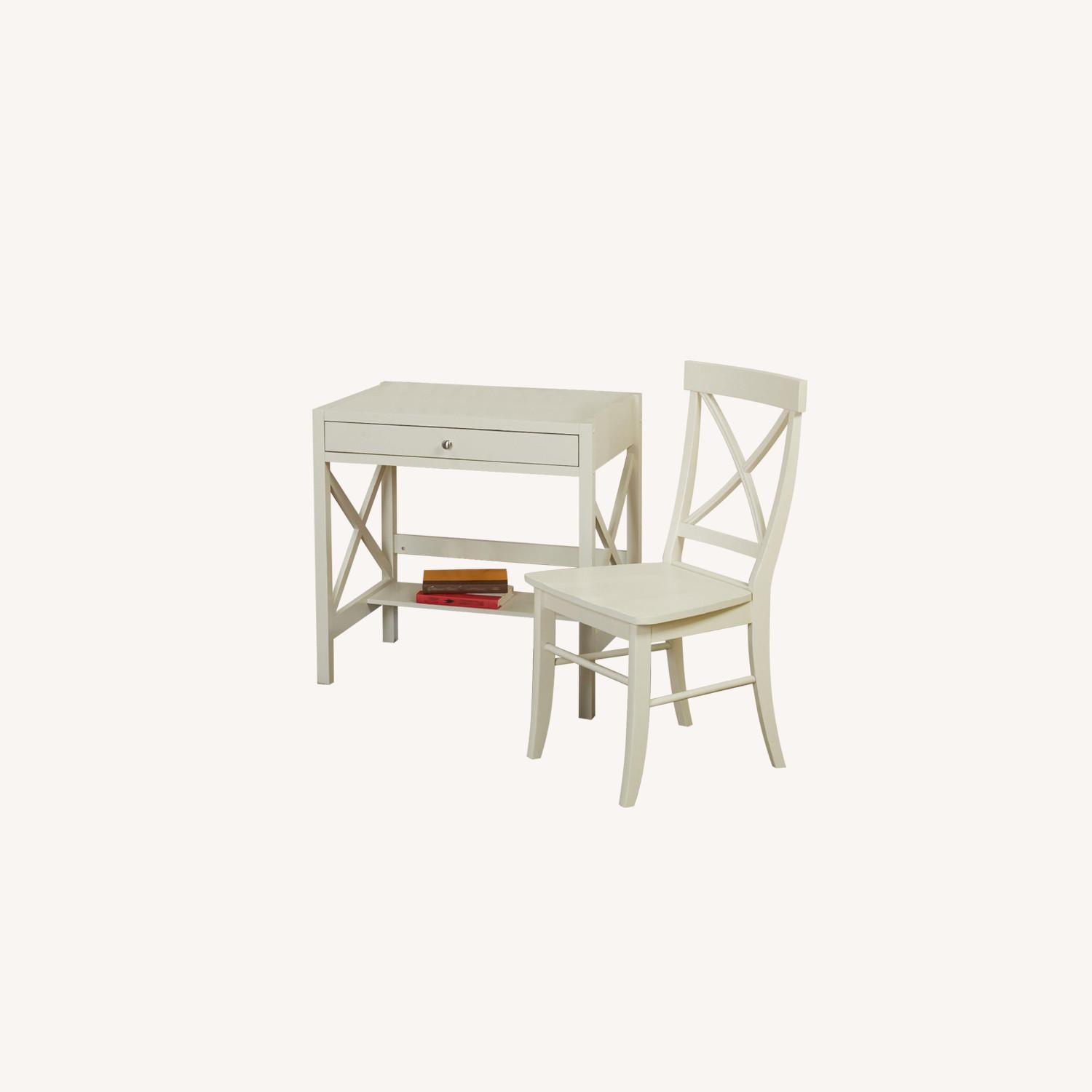 Seller's Notes:I bought this desk/chair set 1 year ago - love it, but I'm moving and can't take furniture with me. Bought the set for $250, selling for $150. There was a manufacturing error so the drawer does not work, but otherwise it's in great condition. **Buyer needs to pick up before Tuesday 8/20** Link to distributor: Desk: Originally $150, https://www.overstock.com/Home-Garden/Simple-Living-Antique-White-X-Desk/9199805/product.html?cid=228583&ehid=66502A2D06DB9639E0531006140AFFA4&fp=f&token=239682-23968215218278421151200425120315949821-20180323-1-a11f4a&utm_medium=email Chair: Originally $100, https://www.overstock.com/Home-Garden/Simple-Living-Antique-White-X-Desk/9199805/product.html?cid=228583&ehid=66502A2D06DB9639E0531006140AFFA4&fp=f&token=239682-23968215218278421151200425120315949821-20180323-1-a11f4a&utm_medium=email Desk: Adorn your bedroom or living area with this antique white desk. With extra embellishment from its cross-back side panels, it will add a touch of charm to your home. Keep your space organized and neat with the drawer and storage shelf. The desk features a top drawer for stationery items and a lower bottom shelf for reference materials. Features: Writing desk X-designed desk frame Includes 1 drawer and 1 shelf Antique white finish Casual style Made of pine wood and MDF Assembly required, hardware included Dimensions: Desk: 30 inches high x 30 inches wide x 20 inches deep Drawer: 2.25 inches high x 25.5 inches wide x 13.1 inches deep Lower shelf: 27.25 inches wide x 8 inches deep Floor to bottom of the drawer: approximately 27.75 inches high Chair: Add a retro touch to any space with the Easton cross-back chair. This piece is constructed of durable wood in an antique white finish. Use it to complete your dining room furnishings or add it to any corner of your home for a charming touch. Create an ad-hoc writing space by pairing this pretty chair with a coordinating desk in your office or living room. Use several of these rubberwood chairs to update your dining room or your eat-in kitchen. This high-quality chair comes in a convenient ready-to-assemble kit, so you can incorporate it into your home quickly. Materials: Rubber wood Finish: Antique white Dimensions: 36.5 inches high x 18.5 inches wide x 20.75 inches deep Seat dimensions: 17.3 inches high x 18.3 inches wide x 15.25 inches deep
