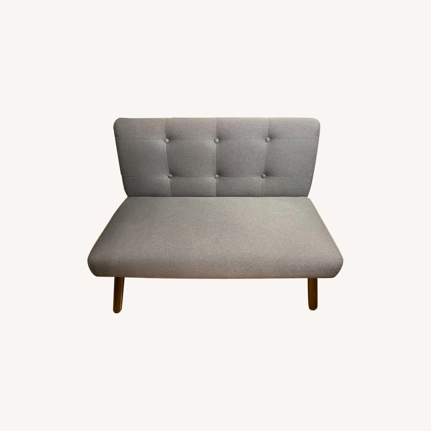 Seller's Notes:Celebrate a minimalist lifestyle with the understated design and cool colors of this Playmate loveseat from Simple Living. Walnut-finished solid-wood legs and foam padding provide comfort and support, while the button-tufted chair back adds a mid-century touch to your space. Link to Item: https://www.overstock.com/Home-Garden/Simple-Living-Playmate-Loveseat/13164467/product.html Already Assembled & less than a year old! Perfect, like-new condition!