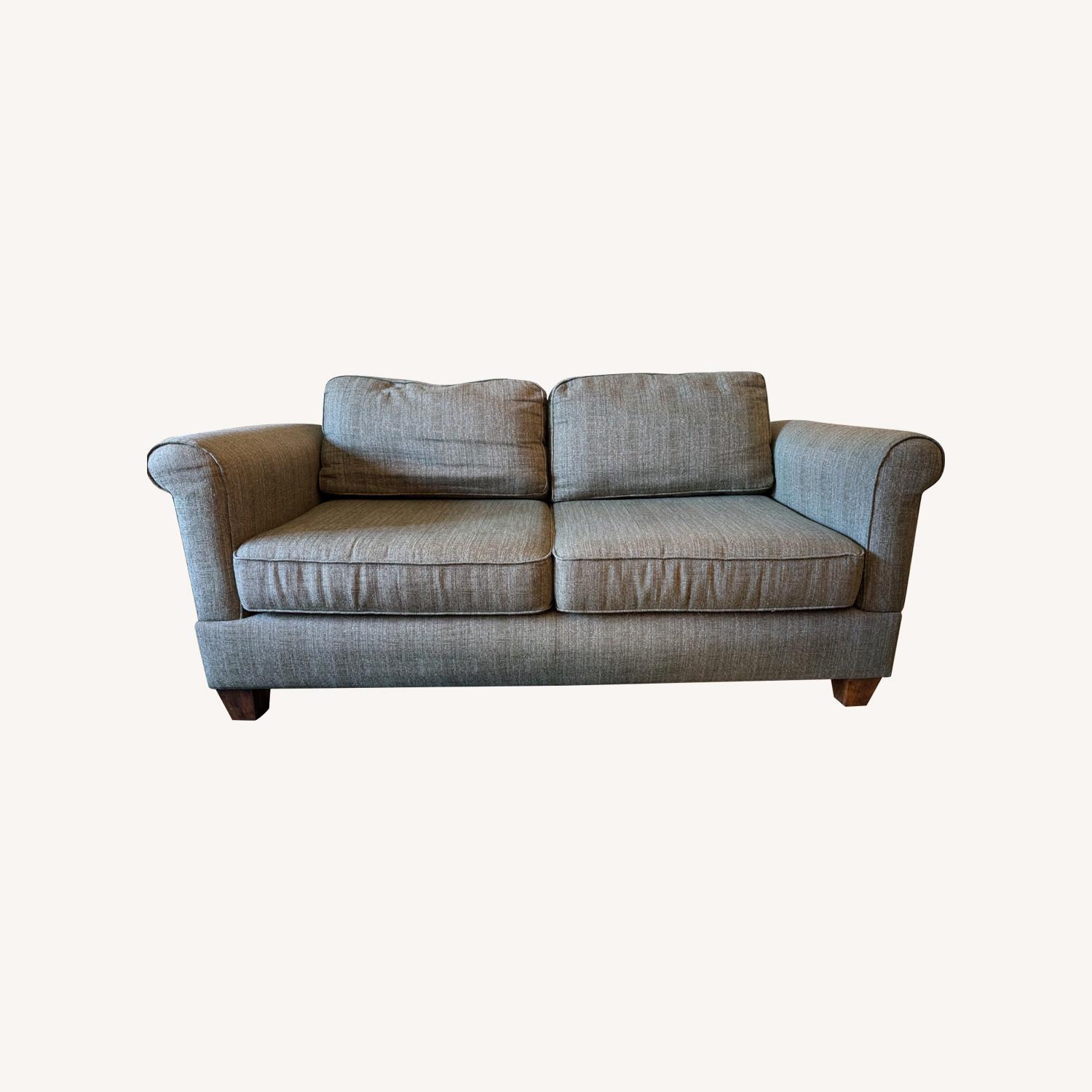Seller's Notes:"Blast Off Seaweed" tweed fabric 2.5 Ultracel cushions No pets, no smoking household Its been used for 5 years and still in excellent shape Arms detach and back folds down for easy transport Overall: 68" W x 32" D x 35" H Seat Height: 19" Arm Height: 28" Seating Depth: 21" Seat Cushion Depth: 27" Back Cushion Depth: 6" Back Height: 30" Arm Width: 6" Seating Area Between Arms: 56"