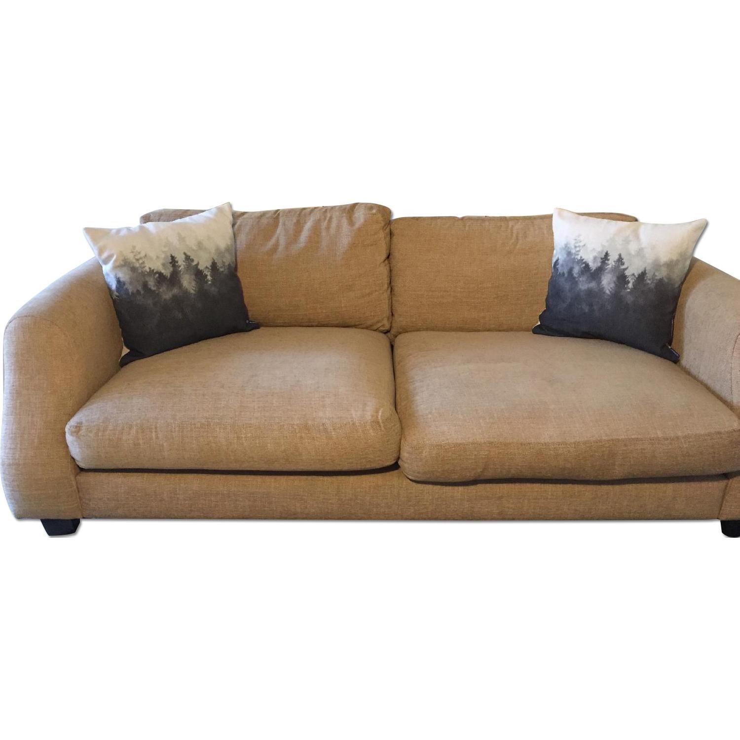 Seller's Notes:Minor signs of wear, nothing that I can photograph since they're all teeny tiny. The couch is very well constructed, made in the UK for a boutique luxury hotel here in NY, but the location was never opened so it sat in storage until I won it at auction. Now I'm moving and I'll have to say goodbye, but it's a great sofa and comes from a pet free and smoke free home.