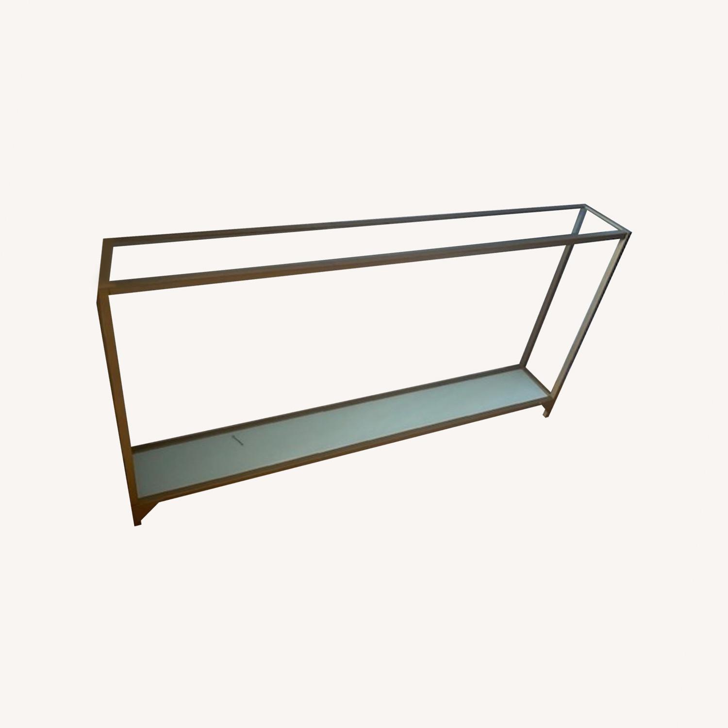 Seller's Notes:Got the table online a few years ago for the hallway and served us well! We're moving and there's no where to put it in the new place. Just a tiny bit wobbly but not noticeable and doesn't move when you have things on it / it's up against the wall.