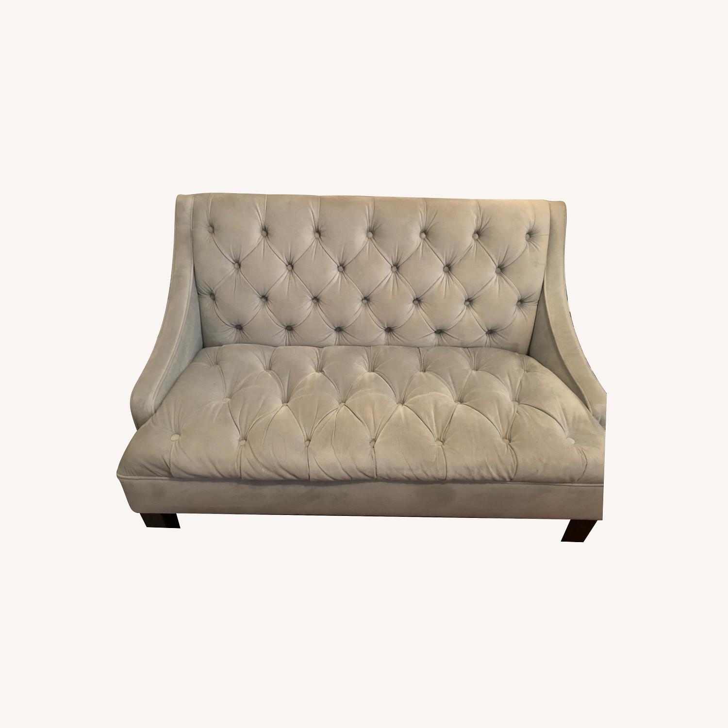 Seller's Notes:Beautiful velvet loveseat for sale in a rare light blue shade. This settee ages well and is resistant to stains and wear and tear. Fits 2 - 3 people comfortably.