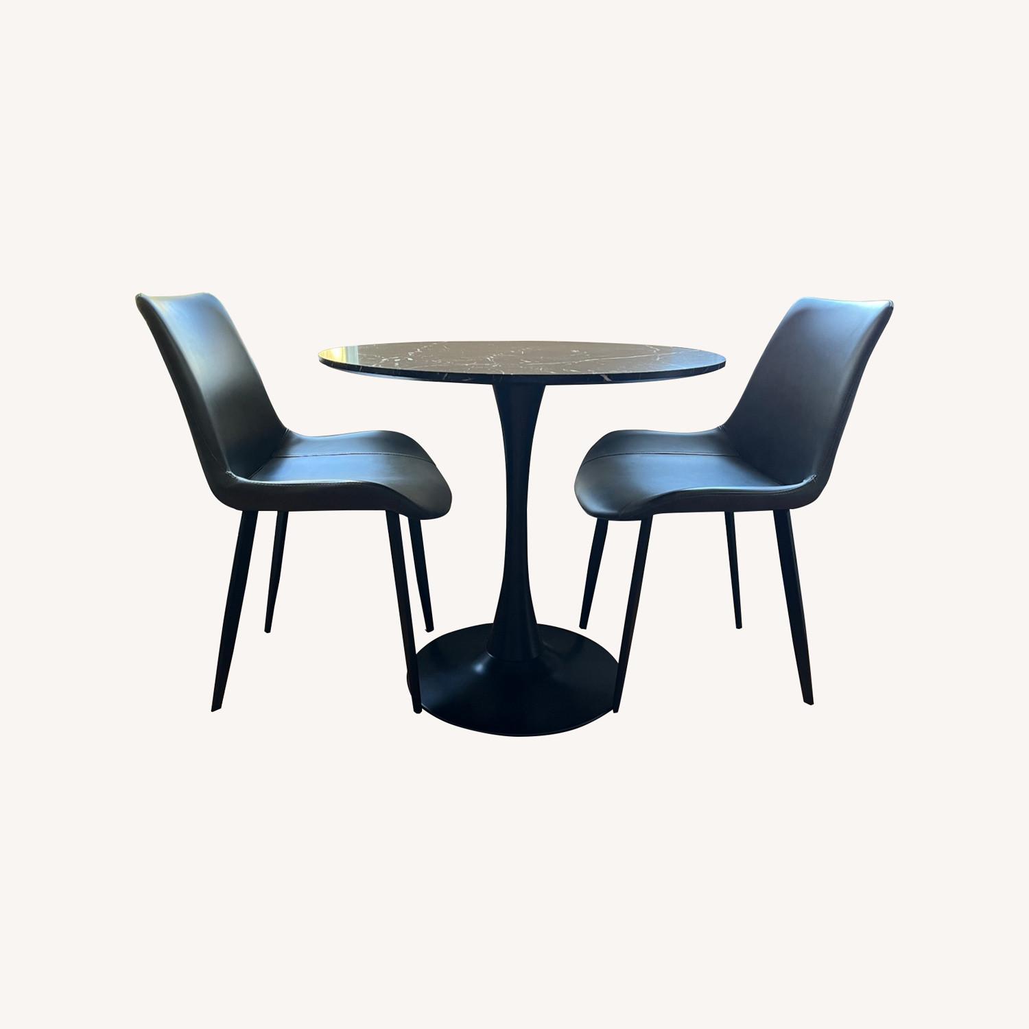 Seller's Notes:perfect small table for your 1-bedroom or studio apartment! Features a 'marble' coated table with 2 faux leather chairs. Just bought recently and in excellent condition.