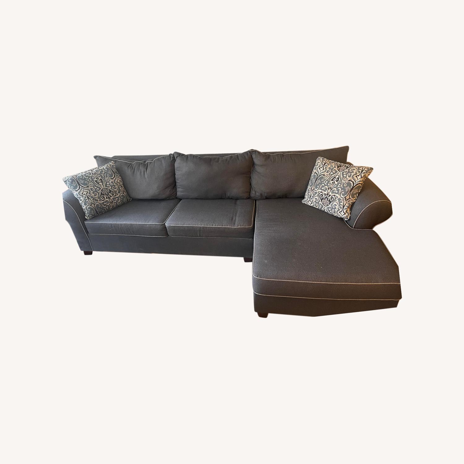 Seller's Notes:Good condition. Charcoal weave fabric. 2 throw pillows included. Upgraded memory foam mattress has only been used 3 times (guess I didn't need a sleeper sofa after all). Non-smoking, single person home. 1 small hypoallergenic dog but she sleeps on a blanket when she's on the couch.