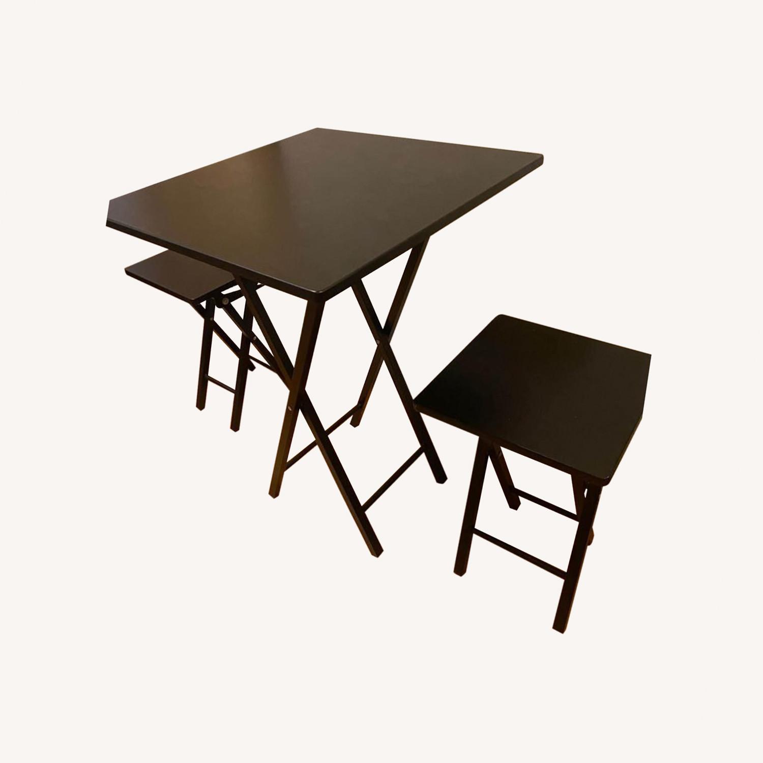 Seller's Notes:SMALL black dining table set. Two chairs are included. Please see measurements: Table: 29.5”x22x22 Each chair: 18”x12”x12” Set has been used and shows signs of use, but works perfectly. All foldable. Brand and material are unknown. Comes from a pet-free, smoke-free home. Only selling this as a set — not looking to sell table or chairs individually. Let me know if you have any questions!