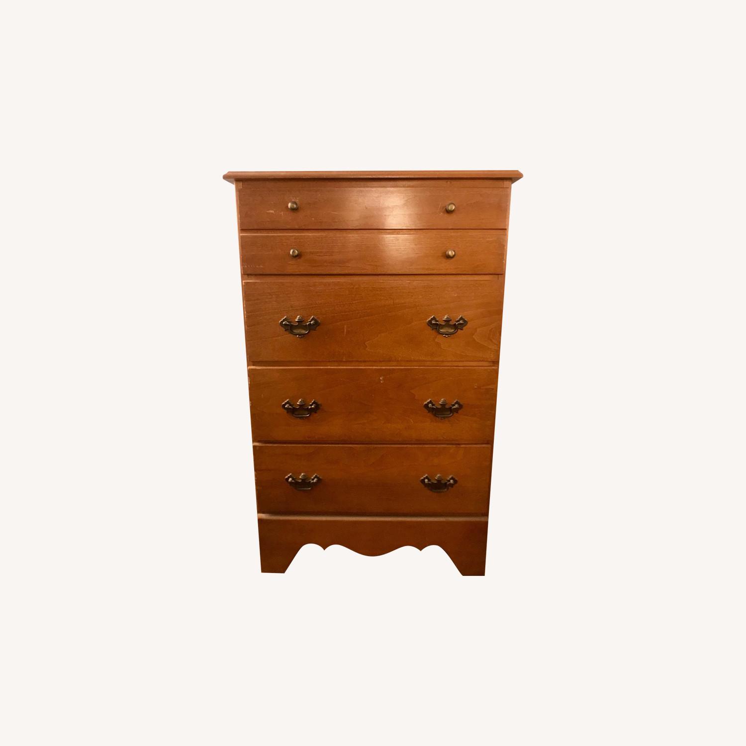 Seller's Notes:Nice small sized Chest of drawers with good storage room. A little furniture polish or furniture stain will offset a very nice piece of furniture. Can fit nicely in a small apartment. Resided in a smoke free, pet free home since purchase.