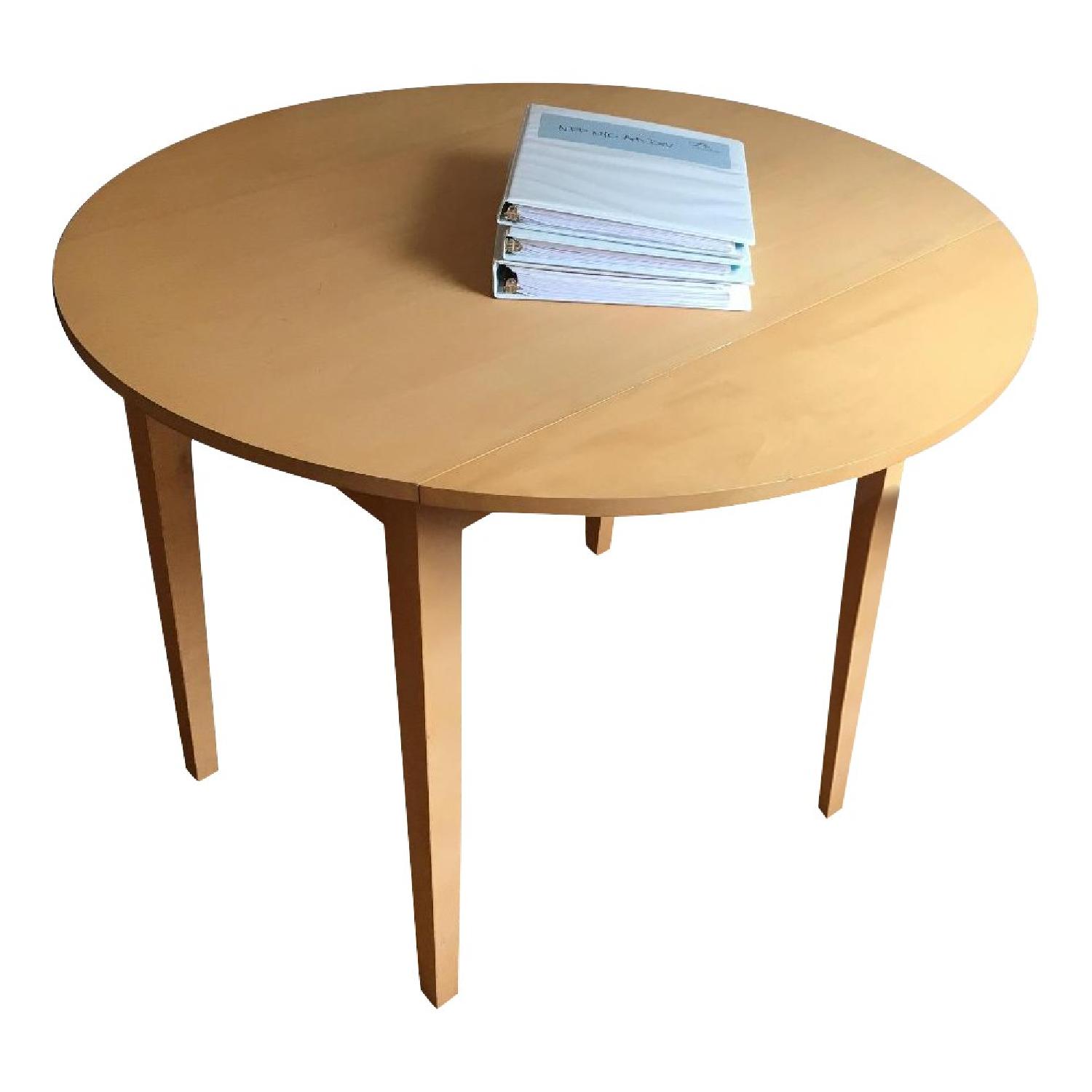 Seller's Notes:These small sturdy tables have been great for small meetings at our office. The flaps allow you to expand or contract depending on your space needs. As a full circle, the diameter is 41.5". As a rectangle it's 23.625" without the flaps. We have two of these tables available for purchase,