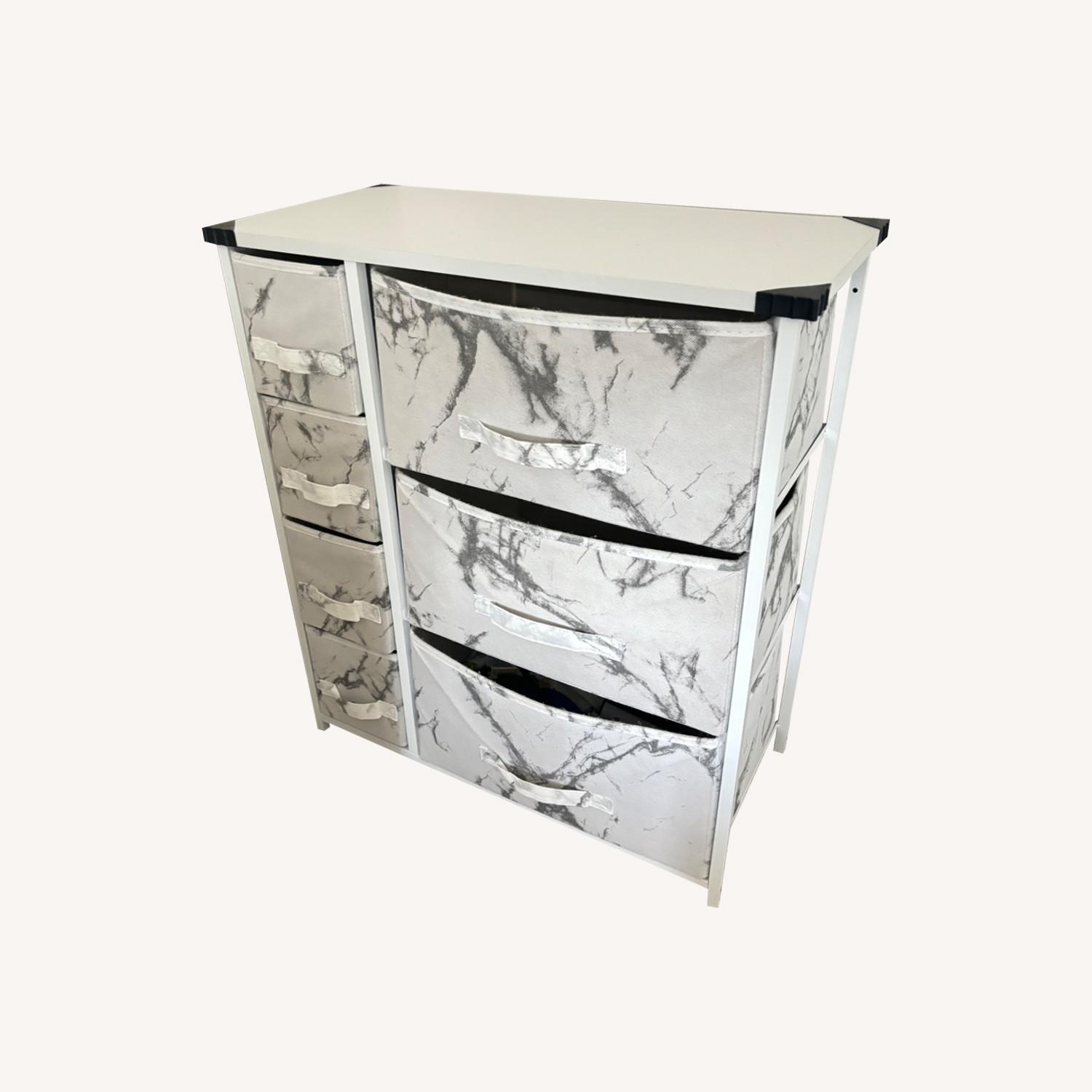 Seller's Notes:• Multipurpose: This 7 Drawer Bedroom Dresser can be used as an end table, side table, or bedside table to store clothes, blankets, crafts, linens, baby clothes, lingerie, purses, scarves, socks, accessories, gadgets, toiletries, makeup, hair/beauty, cosmetics, office supplies, toys, games, Books, paperwork, knitting supplies, and more. • Quality Design: Made with a strong steel frame and durable MDF wood top that offers stable support for your belongings - Drawers are easy to clean and made of breathable, waterproof fabric - Due to its lightweight design, the dresser is portable and easily moved from room to room. • Modern Style: Drawers complements many décor styles and aesthetics, whether traditional, rustic, or modern - Can be used for storage in the bedroom, office, living room, hallway, kids' room, guest room, closet, nursery, college dorm, small apartment solutions & more. • Generous Drawer Depth: This bedroom dresser features 7 fabric drawers, offering large storage space for nighttime necessities - Each drawer is approximately 8.45 inches deep - and features a reinforced base that easily pulls in and out - When not in use, drawers are removable and fold flat.