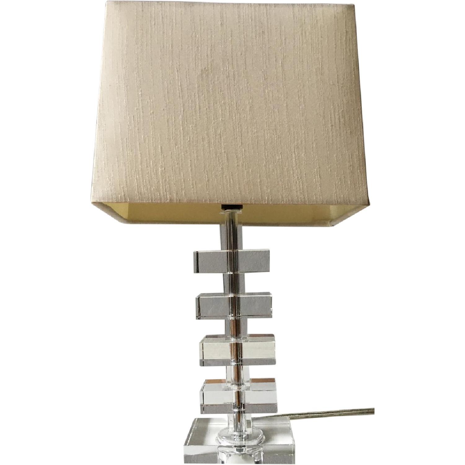 Seller's Notes:-No visible wear and tear, looks new -Great size for small spaces -Beautiful glass base in perfect condition and rectangular shade -Selling due to cross country move -Base: 3.5"w x 2.5"d x14.25"h -Shade: 8"w x 5"d x 6"h