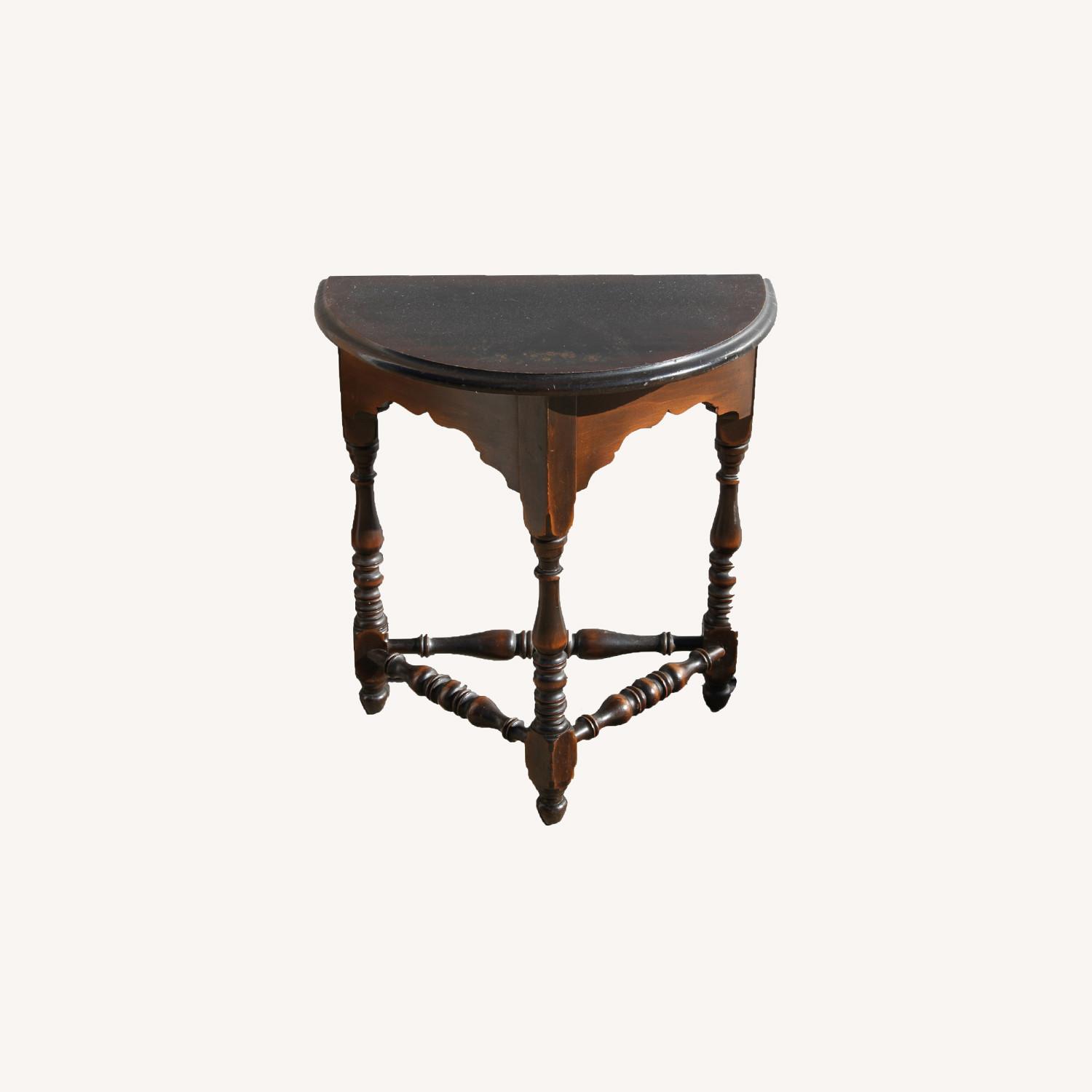 Seller's Notes:Small Hallway Table Furniture Dark Mahogany Turned Half Hallway Table Size: 23 in. x 21 in. x 13 in. (58.42 cm x 53.34 cm x 33.02 cm)