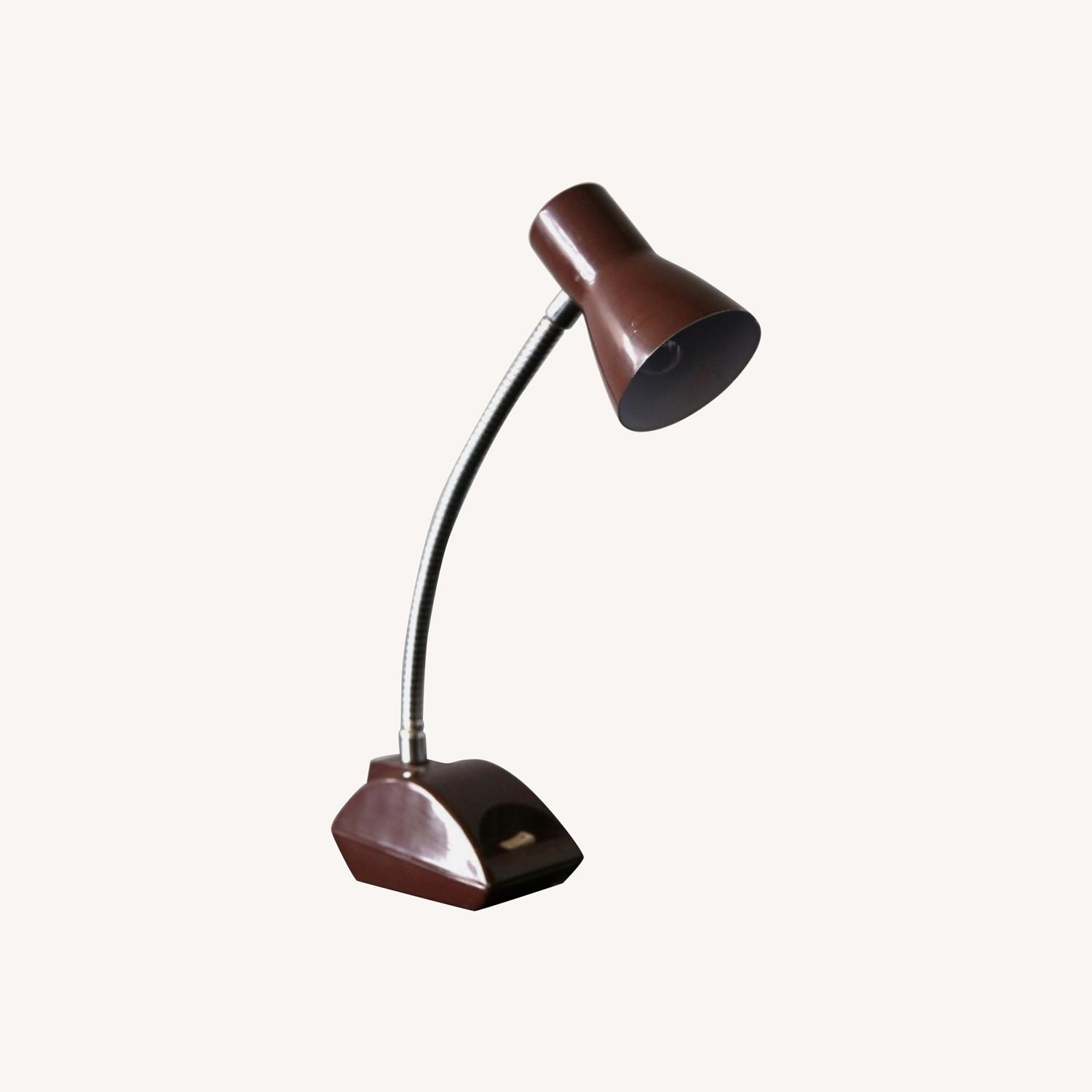 Seller's Notes:Mid century dark brown plastic gooseneck desk lamp. Great condition, bulb included. 2 prong plug and very cute. Perfect reading lamp.